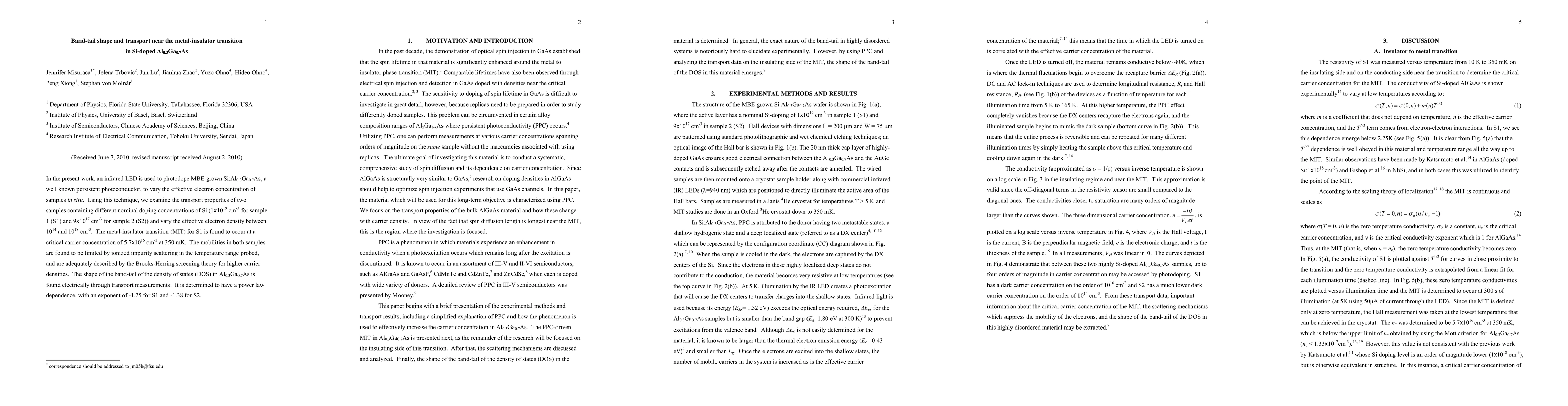 Researchers studied the transport properties of Si-doped AlGaAs near its metal-insulator transition, finding that ionized impurity scattering limits mobility and that the band-tail shape is exponential in character, with varying exponents for different doping concentrations.