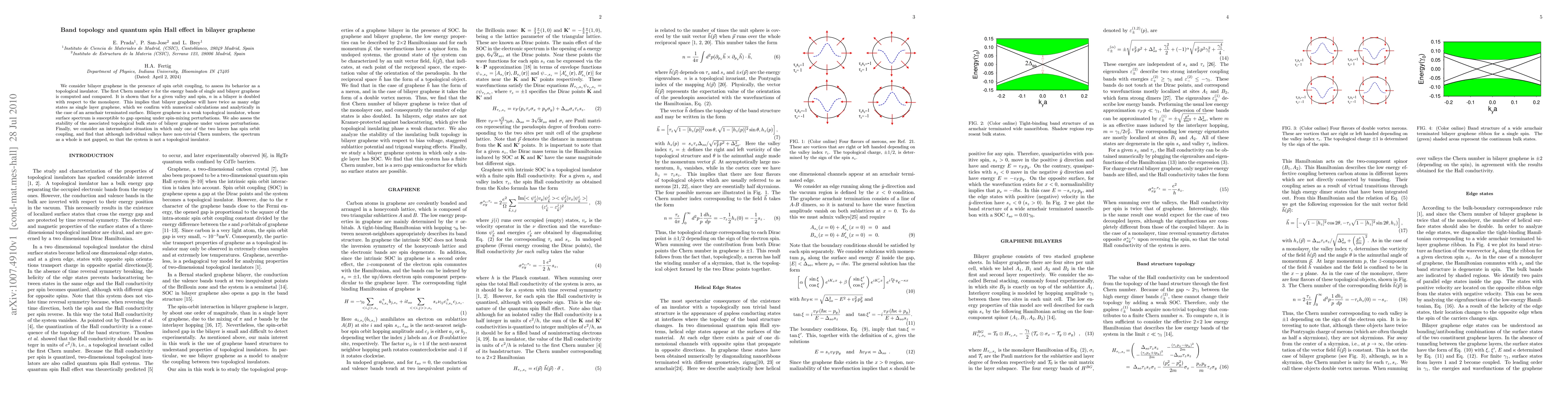 Bilayer graphene with spin-orbit coupling exhibits a doubled first Chern number compared to monolayer graphene, indicating twice the number of edge states and confirming it as a weak topological insulator. The topological bulk state remains stable under various perturbations but lacks a gapped spectrum when only one layer has spin-orbit coupling, thus not qualifying as a topological insulator.