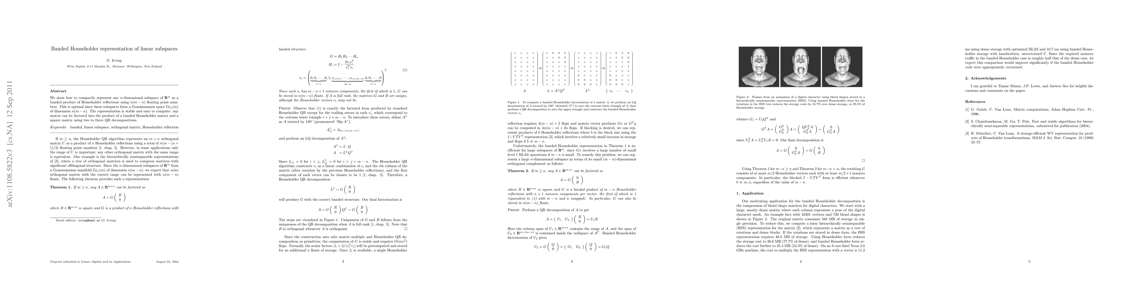 This paper presents a compact representation of $n$-dimensional subspaces of $R^m$ using banded Householder reflections, requiring $n(m - n)$ floating point numbers, which is optimal. The method is stable and efficiently computable through two to three QR decompositions.