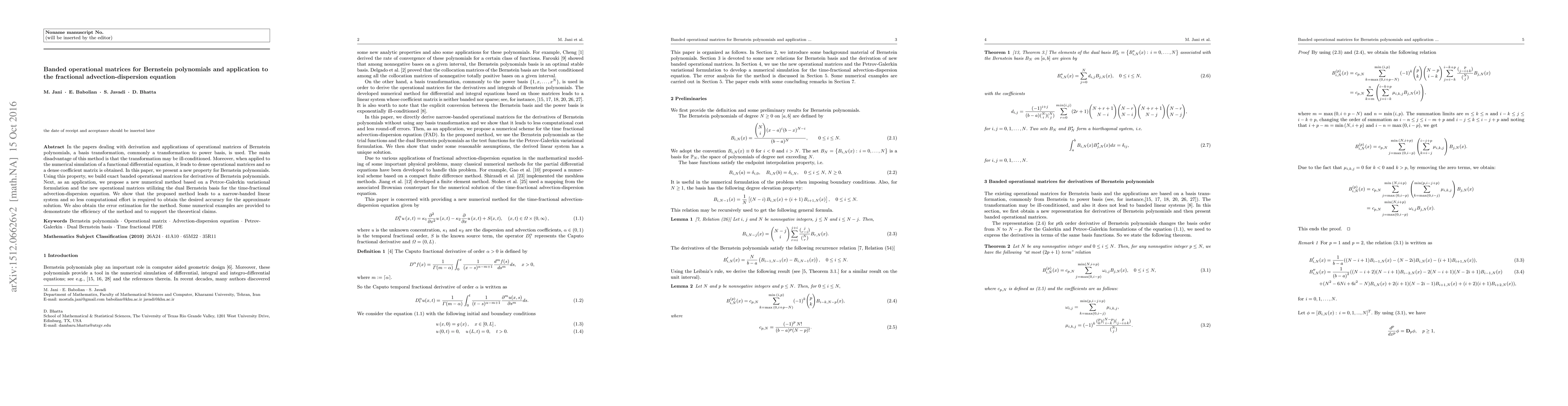 This paper introduces exact banded operational matrices for Bernstein polynomials, overcoming the ill-conditioning and density issues of traditional transformation methods. It proposes a new numerical method for solving the time-fractional advection-dispersion equation using the dual Bernstein basis, resulting in a narrow-banded linear system that requires less computational effort.