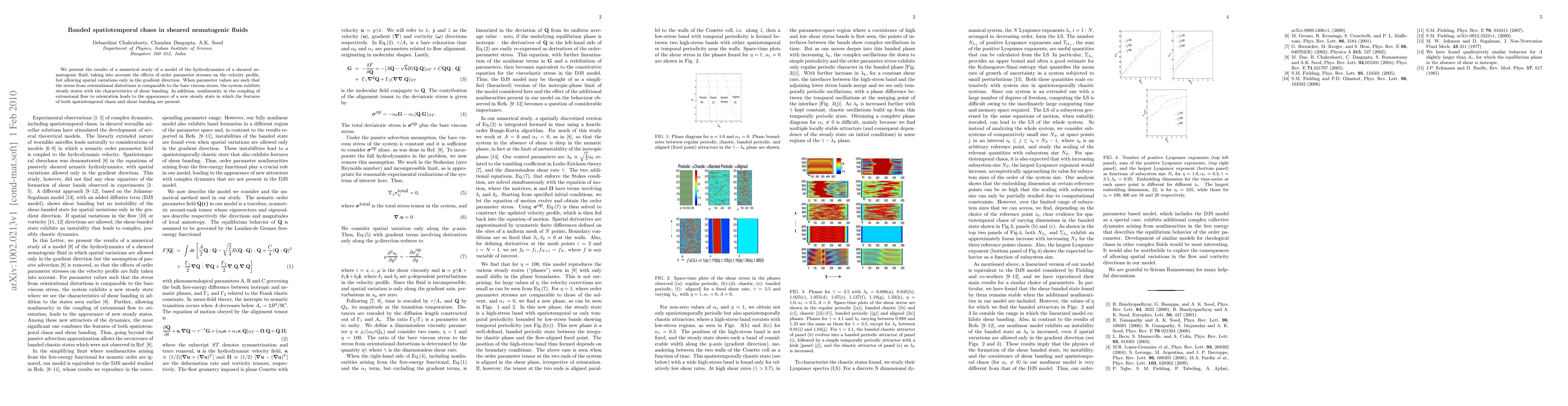 This paper investigates the hydrodynamics of sheared nematogenic fluids, revealing that when orientational distortions' stress is comparable to viscous stress, the system shows shear banding. Additionally, nonlinear coupling of extensional flow to orientation leads to spatiotemporal chaos and shear banding coexistence.