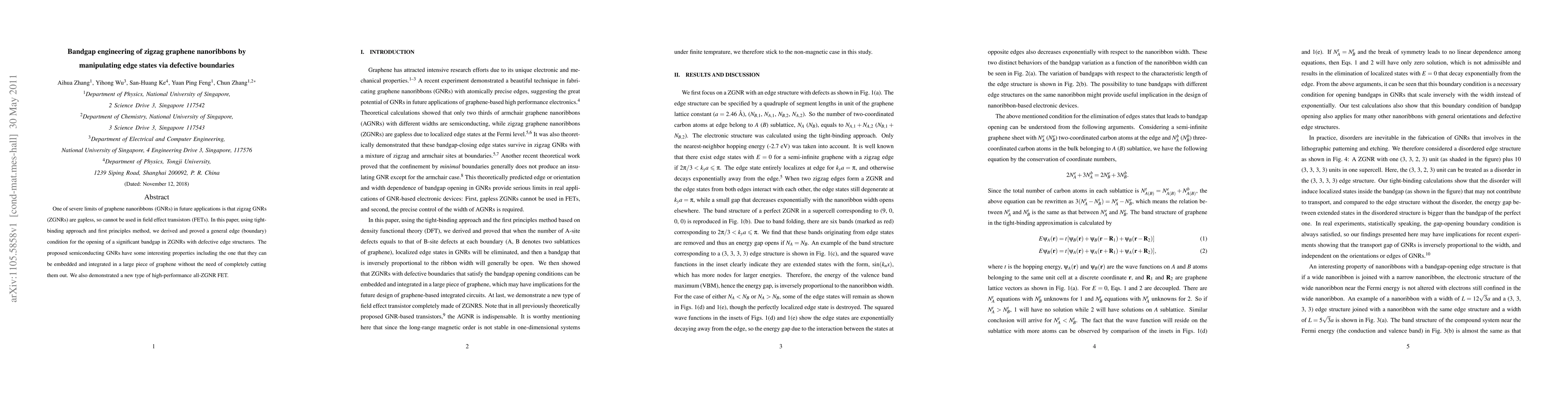 One of severe limits of graphene nanoribbons (GNRs) in future applications is that zigzag GNRs (ZGNRs) are gapless, so cannot be used in field effect transistors (FETs). In this paper, using tight-binding approach and first principles method, we derived and proved a general edge (boundary) condition for the opening of a significant bandgap in ZGNRs with defective edge structures. The proposed semiconducting GNRs have some interesting properties including the one that they can be embedded and integrated in a large piece of graphene without the need of completely cutting them out. We also demonstrated a new type of high-performance all-ZGNR FET.