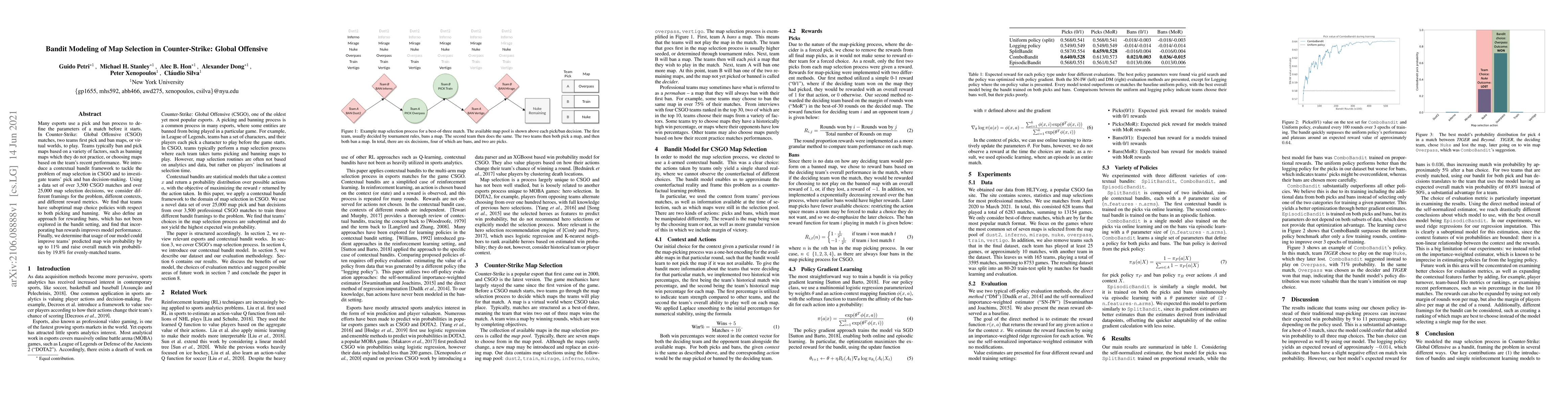 Researchers developed a bandit model to improve map selection in Counter-Strike: Global Offensive, finding that teams can optimize their picks and bans for up to 11% higher win probability.