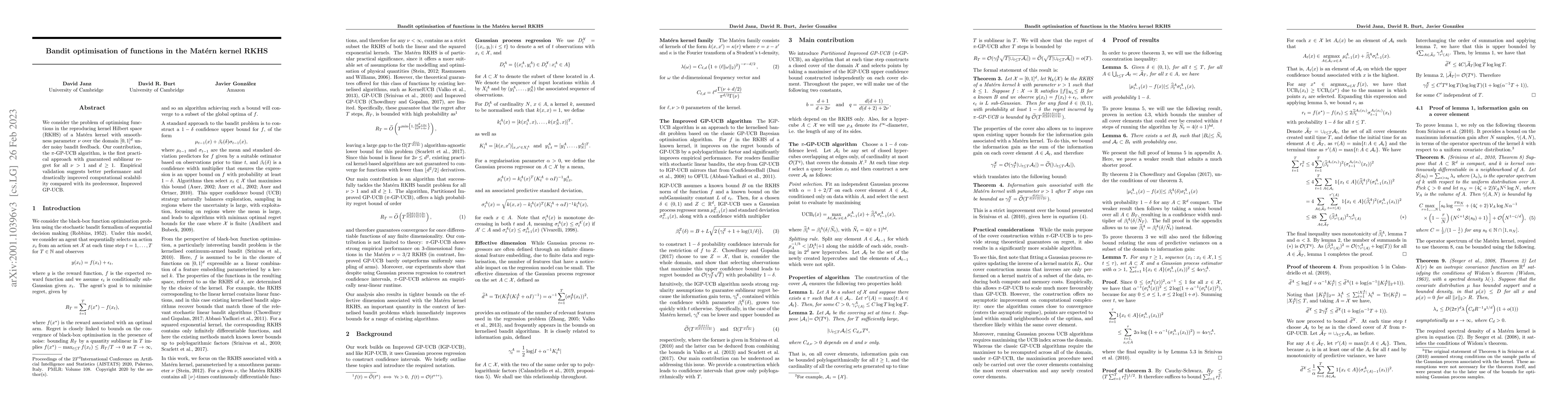 This paper introduces a new $\pi$-GP-UCB algorithm for optimizing functions in the Mat\'ern kernel RKHS under noisy bandit feedback, achieving sublinear regret for $\nu>1$ and $d \geq 1$. Empirical results show superior performance and scalability compared to the Improved GP-UCB algorithm.