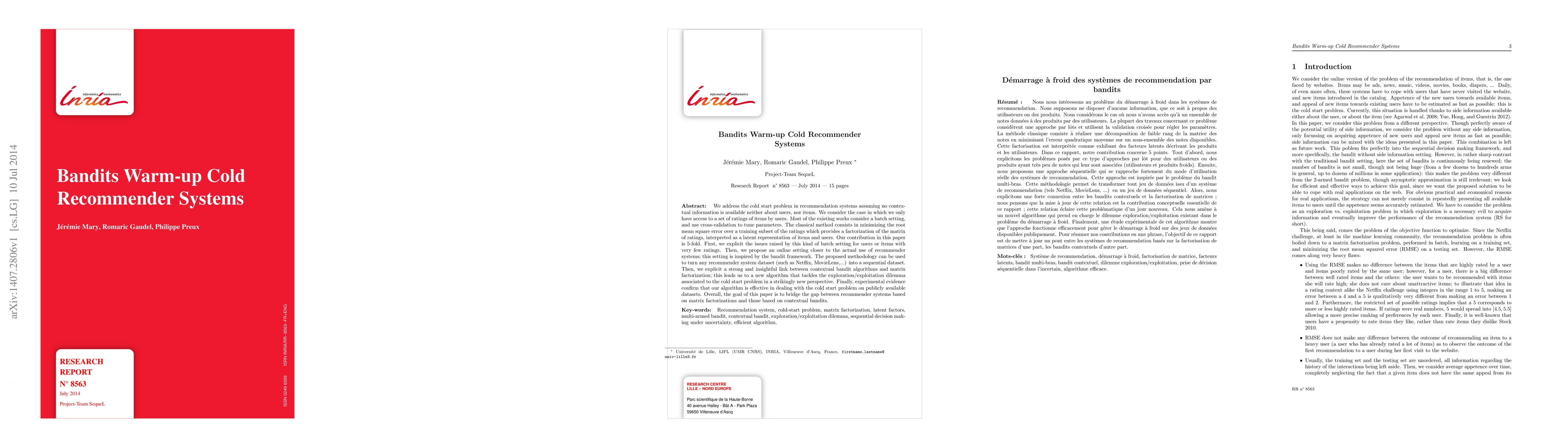 This paper tackles the cold start problem in recommendation systems by proposing an online, bandit-inspired approach that transforms batch datasets into sequential data. It bridges matrix factorization and contextual bandit algorithms to effectively address the exploration/exploitation dilemma, demonstrating improved performance on standard datasets.