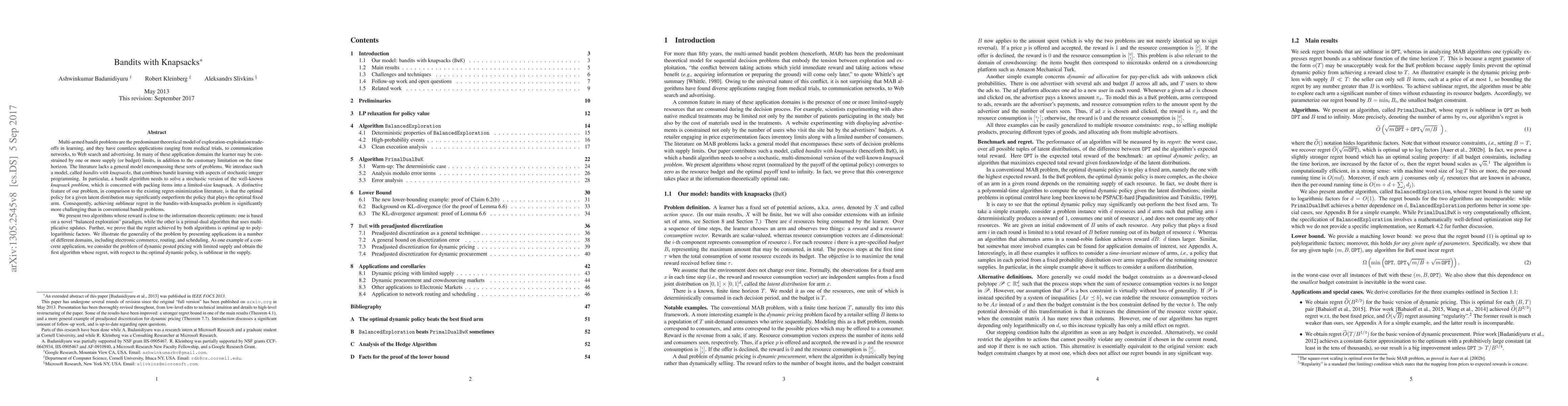 Aleksandrs Slivkins, Karthik Abinav Sankararaman