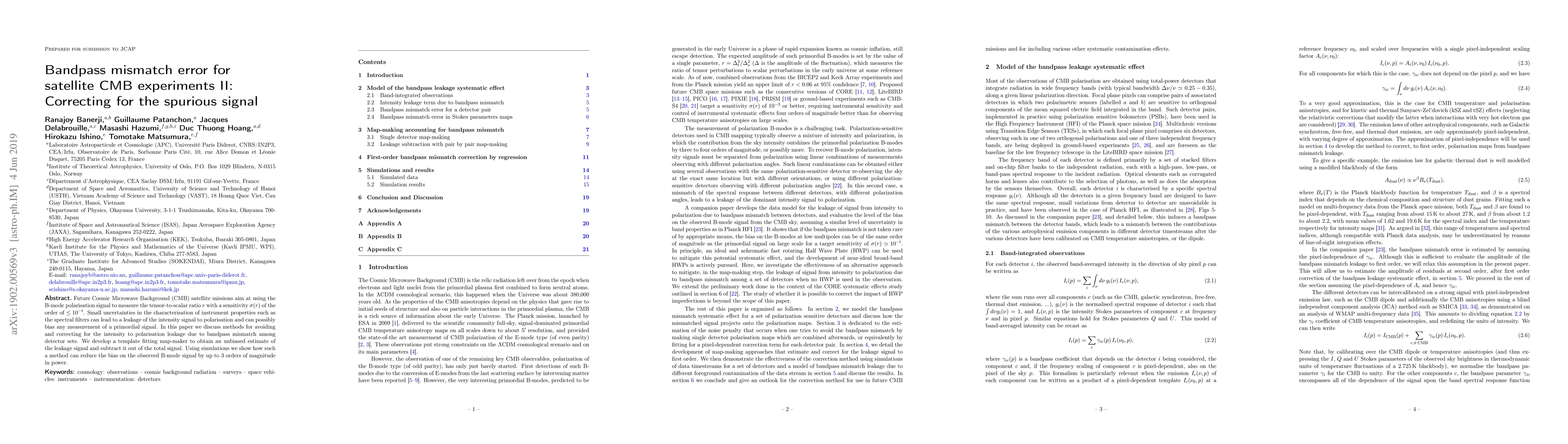 This paper discusses methods to correct for bandpass mismatch errors in satellite CMB experiments, focusing on reducing leakage from intensity to polarisation signals. It proposes a template fitting map-maker to estimate and subtract this leakage, demonstrating a significant reduction in bias on B-mode polarisation signals.