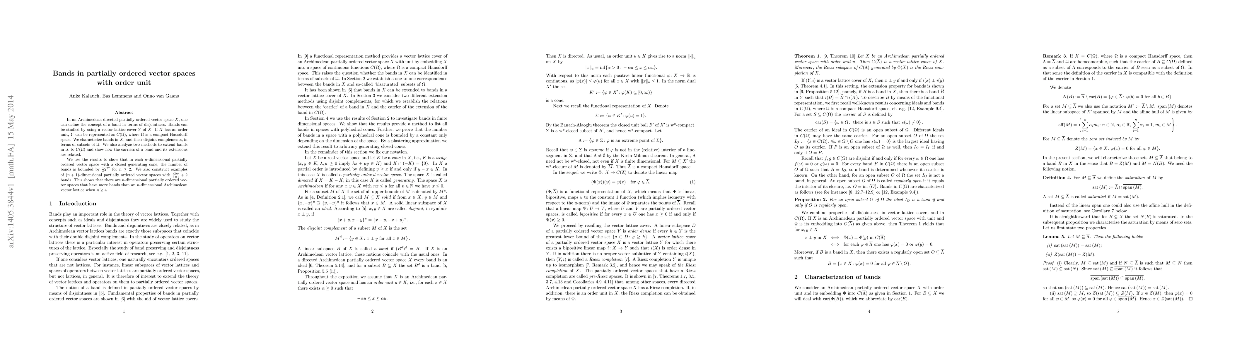 This paper explores bands in Archimedean partially ordered vector spaces with order units, using vector lattice covers to characterize these bands. It establishes a relationship between bands and subsets of a compact Hausdorff space, and provides bounds on the number of bands in such spaces, showing that higher-dimensional spaces can have more bands than corresponding vector lattices.