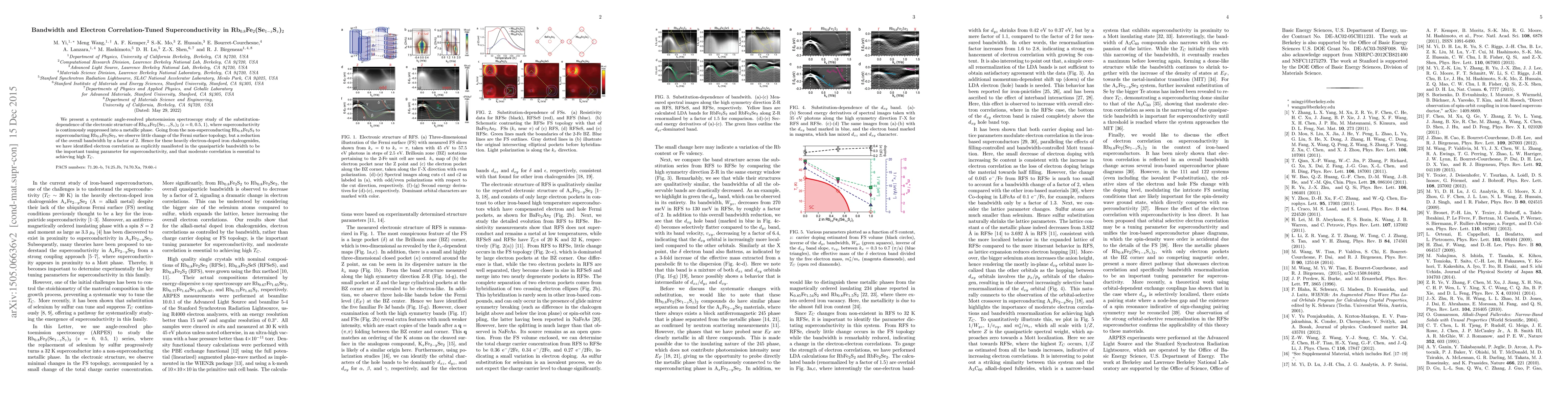 The paper presents a detailed ARPES study revealing the impact of sulfur substitution on the electronic structure and bandwidth of Rb0.8Fe2(Se1-zSz)2, identifying electron correlation as a key tuning parameter for superconductivity.