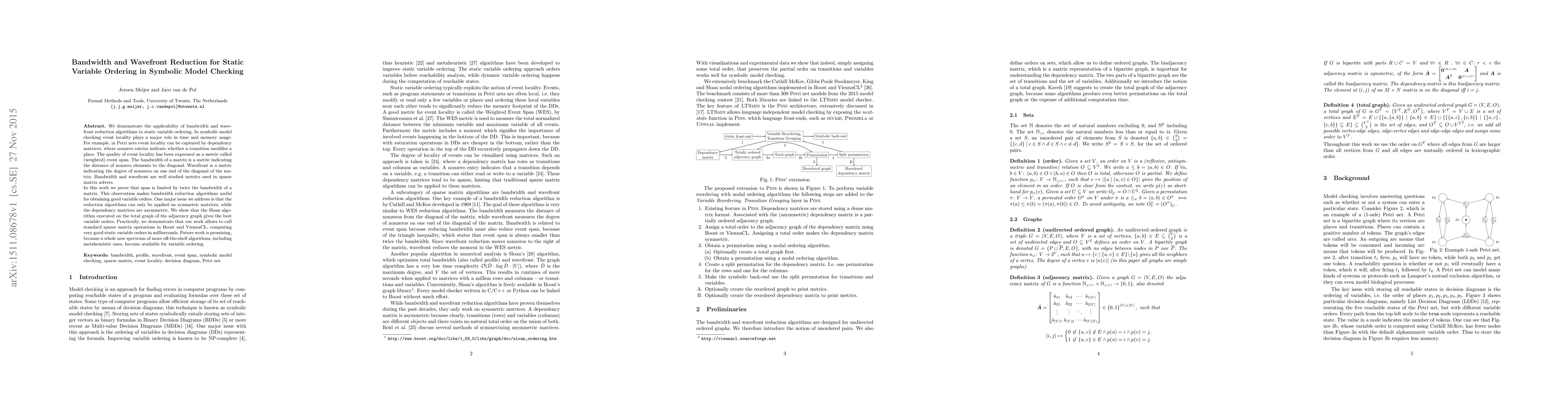 Researchers prove that variable ordering in symbolic model checking can be improved using bandwidth reduction algorithms, which limit event locality to twice the algorithm's distance from the diagonal.