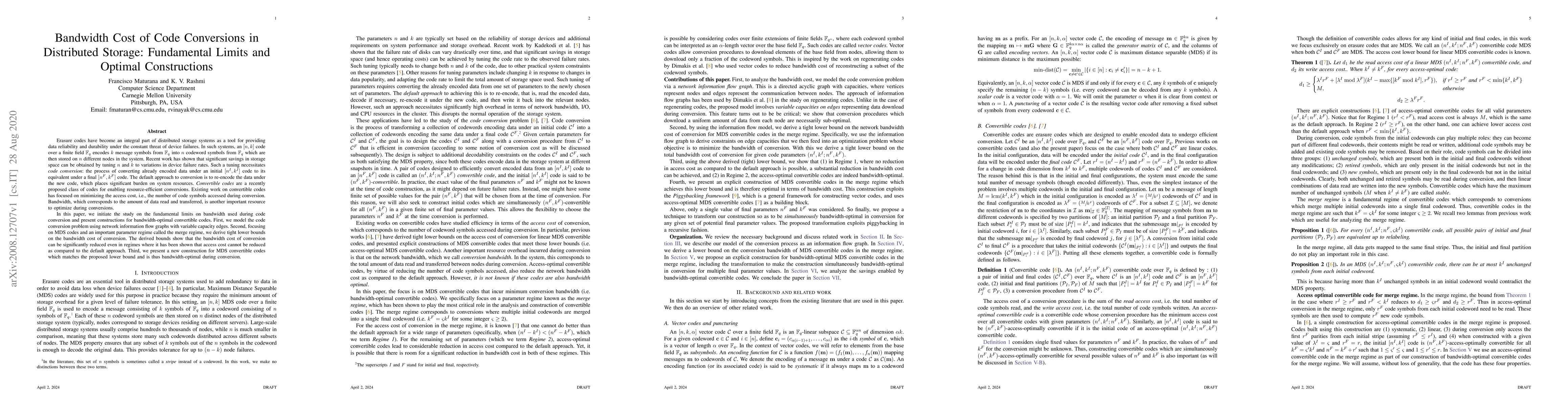This paper explores the fundamental limits and optimal constructions for minimizing bandwidth cost during code conversion in distributed storage systems. It derives tight lower bounds on bandwidth usage and presents a new construction for Maximum Distance Separable (MDS) convertible codes that matches these bounds, achieving optimal bandwidth efficiency.