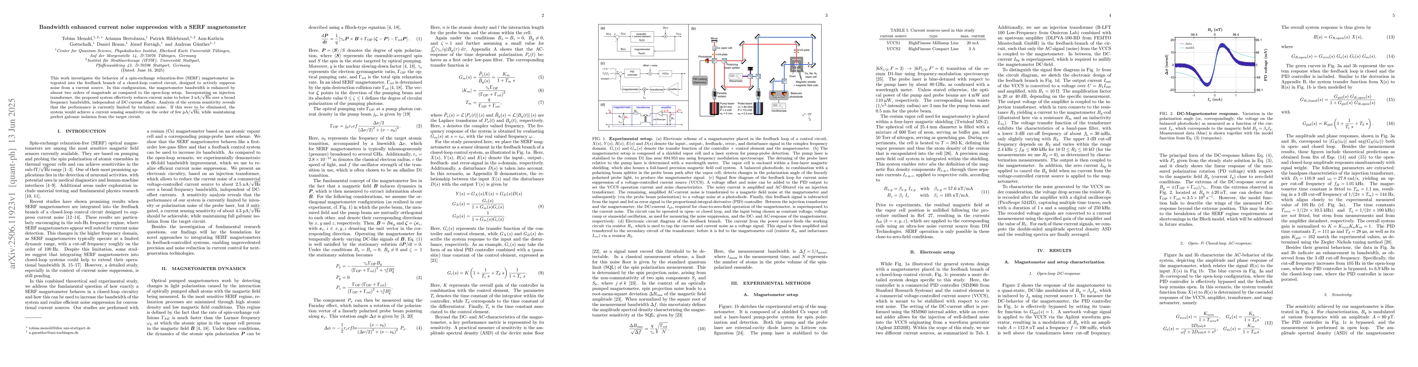 The research investigates a spin-exchange relaxation-free (SERF) magnetometer integrated into a closed-loop control circuit to actively suppress noise from a current source, enhancing the magnetometer's bandwidth by almost two orders of magnitude compared to an open-loop setup.