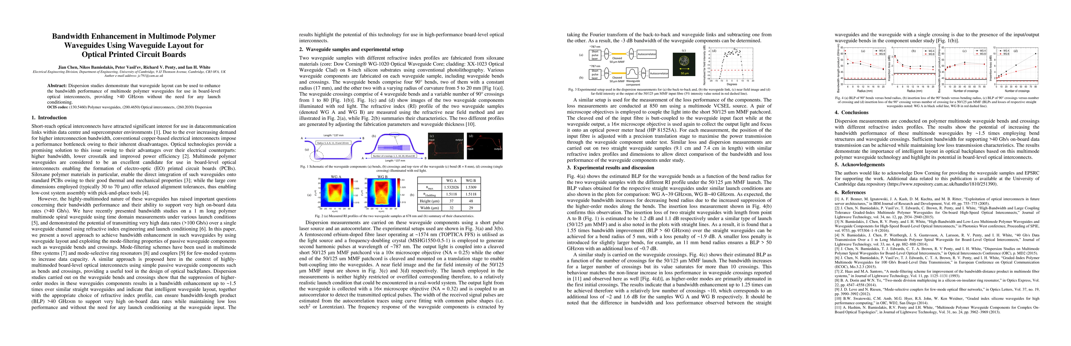 This research shows that optimizing the waveguide layout can significantly improve the bandwidth performance of multimode polymer waveguides, achieving over 40 GHzxm for optical interconnects without requiring launch conditioning.