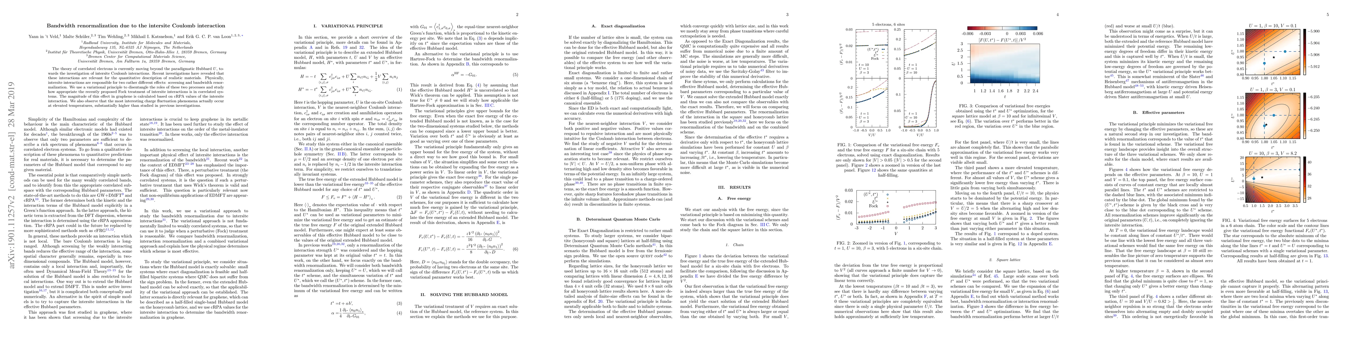This research disentangles the roles of screening and bandwidth renormalization effects caused by intersite Coulomb interactions in correlated electron systems. Utilizing a variational principle, it validates the Fock treatment of these interactions and calculates their magnitude in graphene using cRPA values. The study finds significant charge fluctuation phenomena at higher temperatures than previously investigated.
