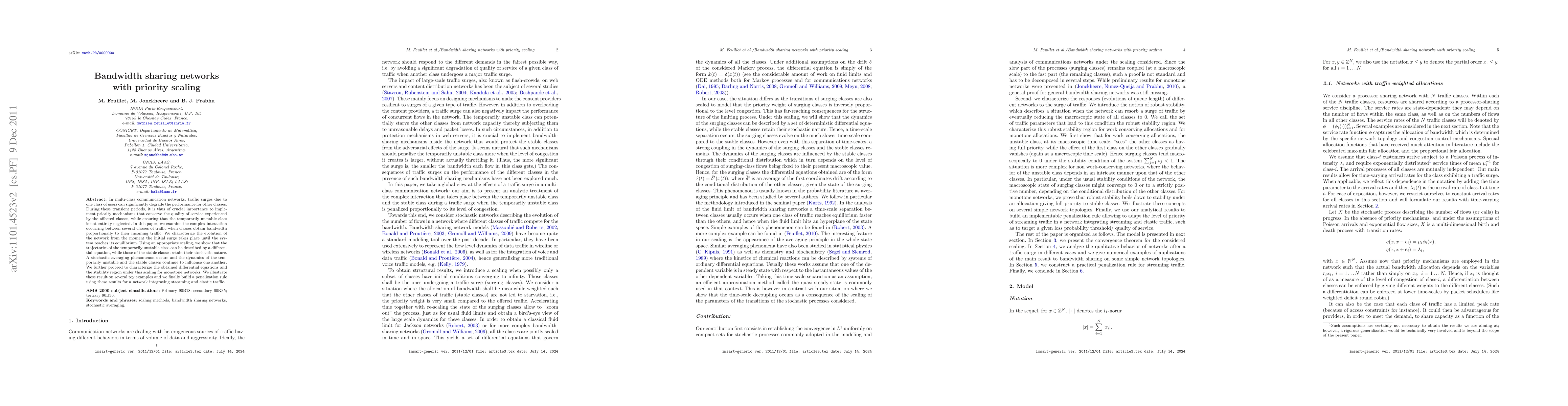 In multi-class communication networks, traffic surges due to one class of users can significantly degrade the performance for other classes. During these transient periods, it is thus of crucial importance to implement priority mechanisms that conserve the quality of service experienced by the affected classes, while ensuring that the temporarily unstable class is not entirely neglected. In this paper, we examine the complex interaction occurring between several classes of traffic when classes obtain bandwidth proportionally to their incoming traffic. We characterize the evolution of the network from the moment the initial surge takes place until the system reaches its equilibrium. Using an appropriate scaling, we show that the trajectories of the temporarily unstable class can be described by a differential equation, while those of the stable classes retain their stochastic nature. A stochastic averaging phenomenon occurs and the dynamics of the temporarily unstable and the stable classes continue to influence one another. We further proceed to characterize the obtained differential equations and the stability region under this scaling for monotone networks. We illustrate these result on several toy examples and we finally build a penalization rule using these results for a network integrating streaming and elastic traffic.