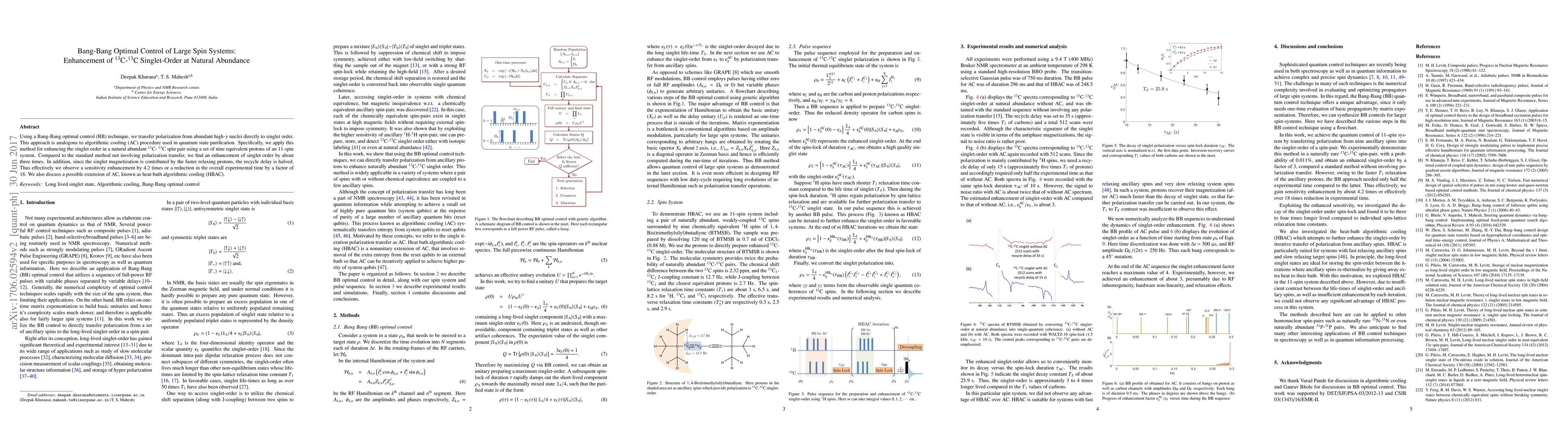Using a Bang-Bang optimal control (BB) technique, we transfer polarization from abundant high-$\gamma$ nuclei directly to singlet order. This approach is analogous to algorithmic cooling (AC) procedure used in quantum state purification. Specifically, we apply this method for enhancing the singlet order in a natural abundant $^{13}$C-$^{13}$C spin pair using a set of nine equivalent protons of an 11-spin system. Compared to the standard method not involving polarization transfer, we find an enhancement of singlet order by about three times. In addition, since the singlet magnetization is contributed by the faster relaxing protons, the recycle delay is halved. Thus effectively we observe a sensitivity enhancement by 4.2 times or a reduction in the overall experimental time by a factor of 18. We also discuss a possible extension of AC, known as heat-bath algorithmic cooling (HBAC).