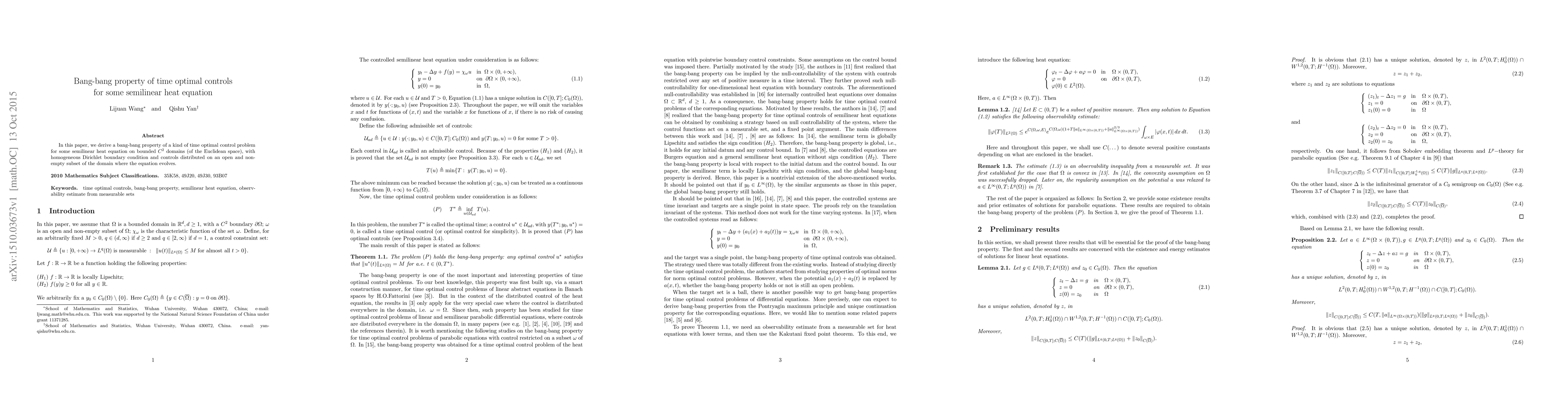 Summary: This paper establishes the bang-bang property for time optimal controls in semilinear heat equations defined on bounded $C^2$ domains, with specific boundary conditions and control distributions. The results highlight the extremal nature of the optimal control strategies.