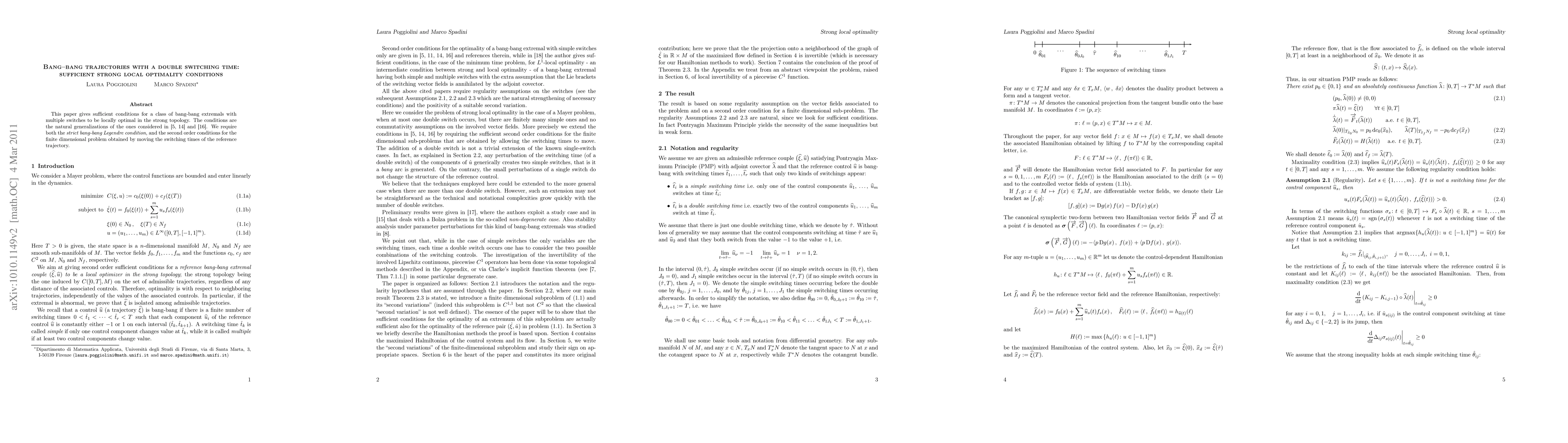 This paper establishes sufficient conditions for bang-bang extremals with multiple switching times to achieve strong local optimality, generalizing previous results. It requires both the strict bang-bang Legendre condition and second-order conditions derived from adjusting the switching times.