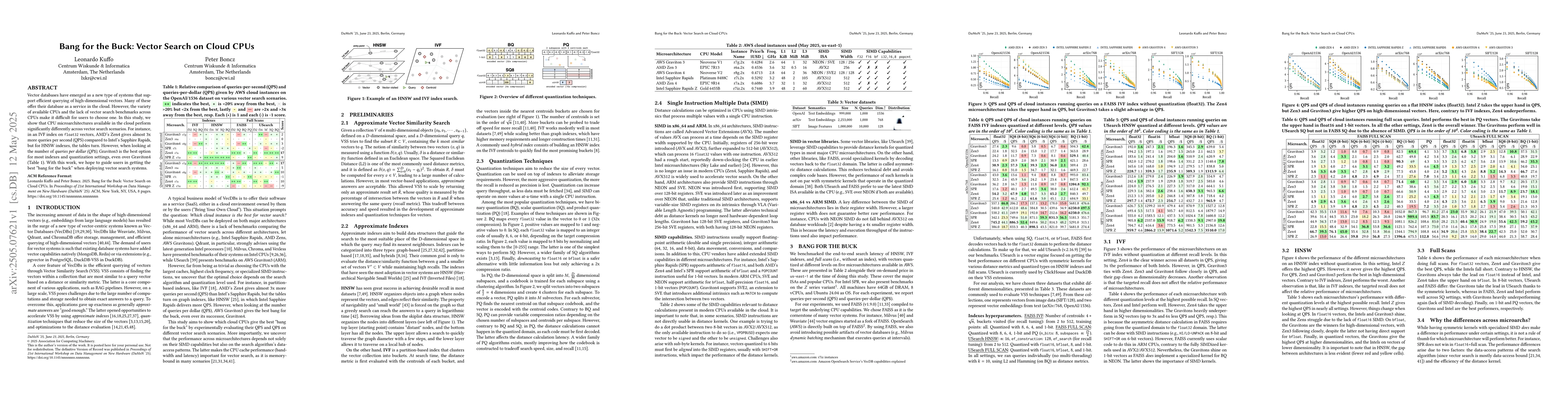 The paper presents a comparative analysis of CPU performance for vector search tasks, offering insights into the cost-efficiency of different CPU options.