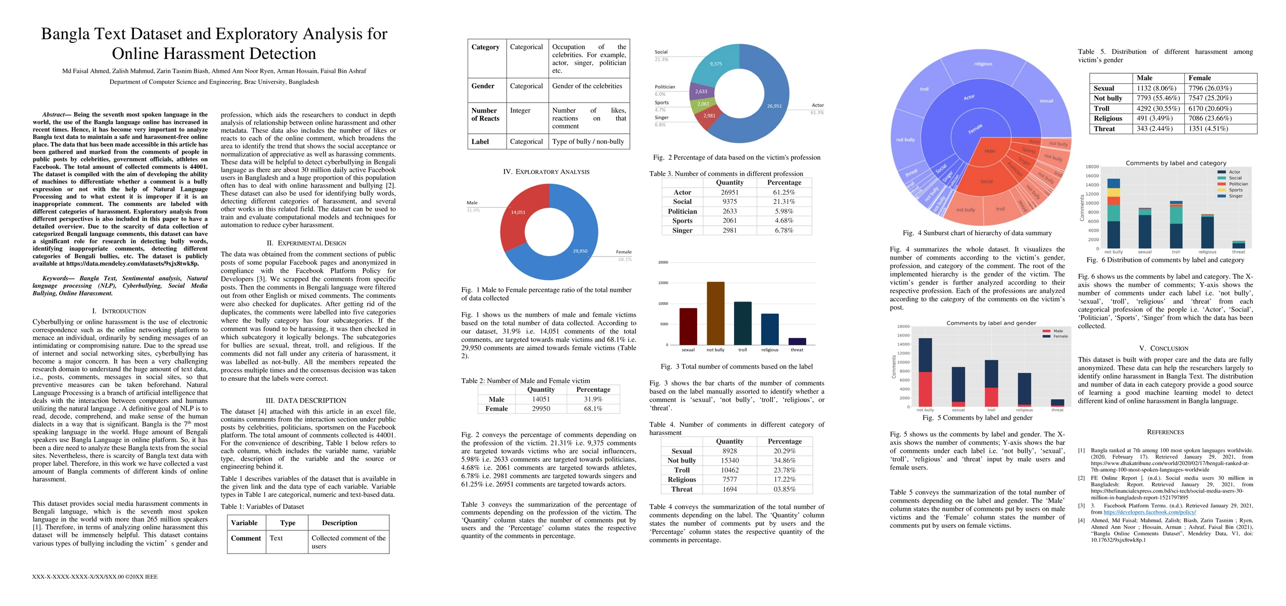 This paper presents a dataset of 44,001 labeled Bangla comments from Facebook, aimed at detecting online harassment using Natural Language Processing. The dataset includes comments categorized by different types of harassment, facilitating research in identifying inappropriate expressions and bully words in Bengali.