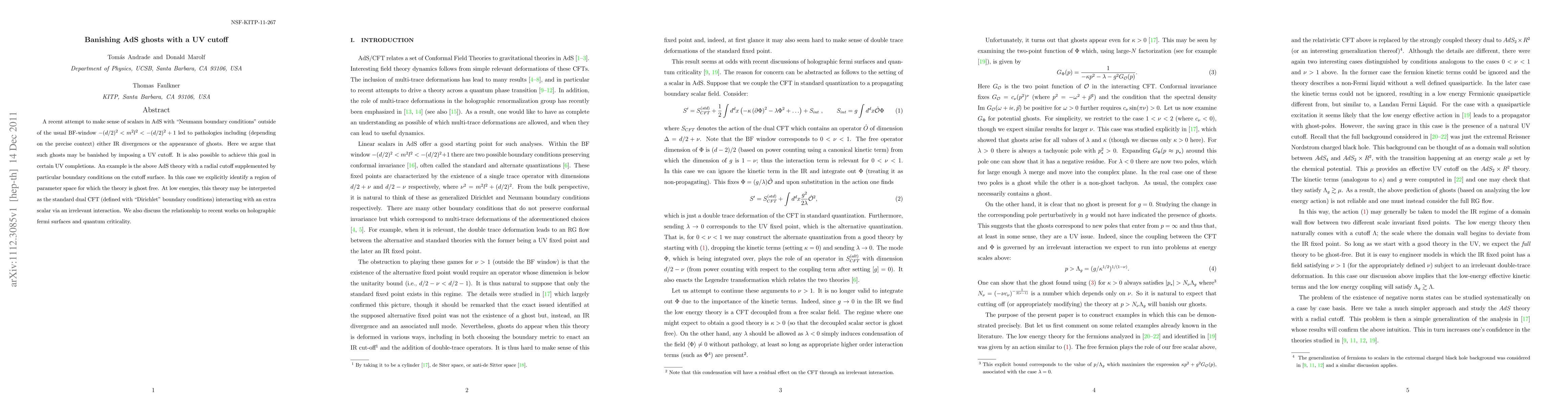 A recent attempt to make sense of scalars in AdS with "Neumann boundary conditions" outside of the usual BF-window $-(d/2)^2 < m^2 l^2 < -(d/2)^2 + 1$ led to pathologies including (depending on the precise context) either IR divergences or the appearance of ghosts. Here we argue that such ghosts may be banished by imposing a UV cutoff. It is also possible to achieve this goal in certain UV completions. An example is the above AdS theory with a radial cutoff supplemented by particular boundary conditions on the cutoff surface. In this case we explicitly identify a region of parameter space for which the theory is ghost free. At low energies, this theory may be interpreted as the standard dual CFT (defined with "Dirichlet" boundary conditions) interacting with an extra scalar via an irrelevant interaction. We also discuss the relationship to recent works on holographic fermi surfaces and quantum criticality.
