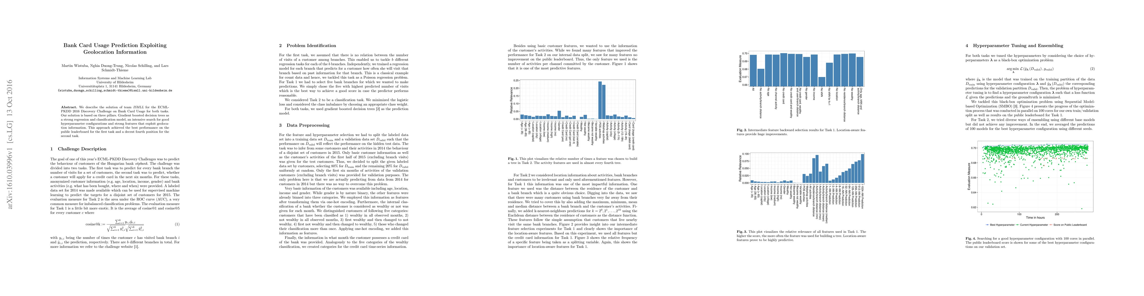 We describe the solution of team ISMLL for the ECML-PKDD 2016 Discovery Challenge on Bank Card Usage for both tasks. Our solution is based on three pillars. Gradient boosted decision trees as a strong regression and classification model, an intensive search for good hyperparameter configurations and strong features that exploit geolocation information. This approach achieved the best performance on the public leaderboard for the first task and a decent fourth position for the second task.