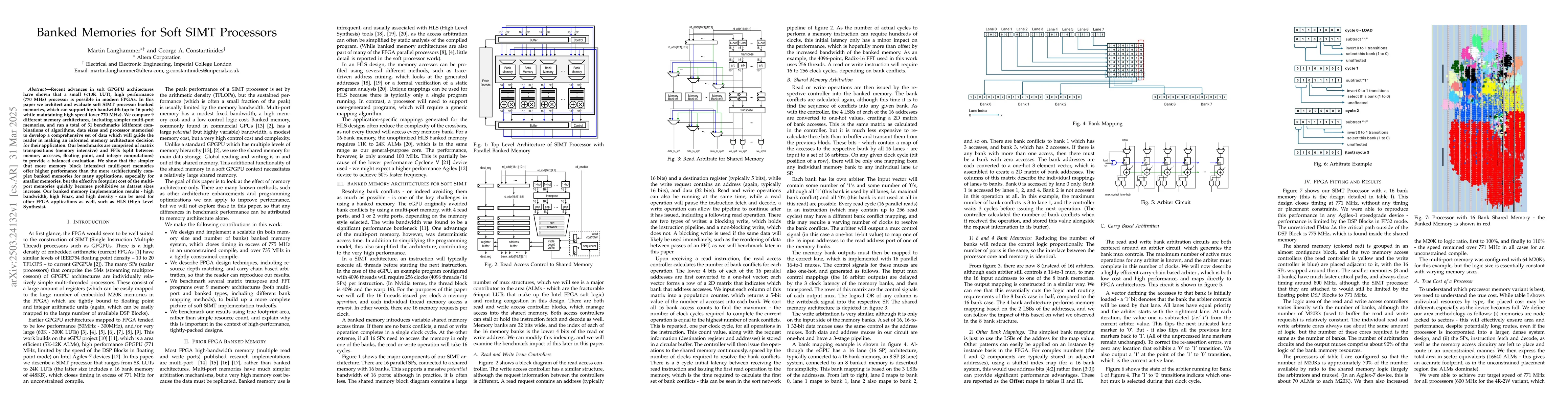 Researchers developed high-performance banked memories for soft SIMT processors in FPGAs, finding that simpler multi-port memories often outperform more complex designs for smaller memory sizes but become less efficient as dataset sizes increase.