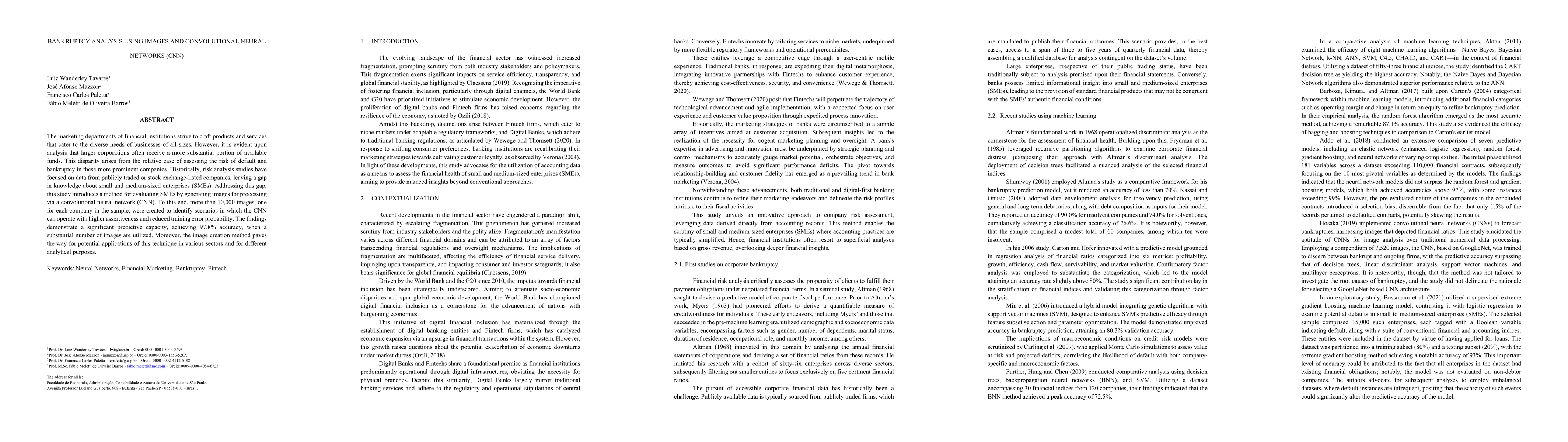 This study develops a method to assess bankruptcy risk in SMEs using images processed by CNNs, filling a knowledge gap for smaller firms. The method generates over 10,000 images per company, achieving 97.8% accuracy, indicating substantial predictive capacity.