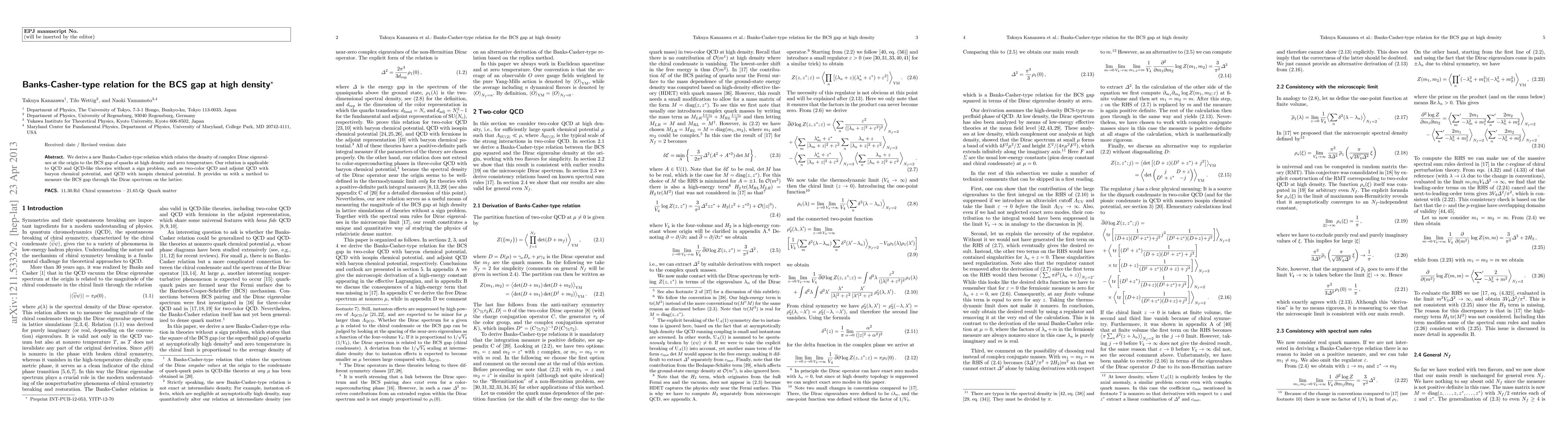 We derive a new Banks-Casher-type relation which relates the density of complex Dirac eigenvalues at the origin to the BCS gap of quarks at high density. Our relation is applicable to QCD and QCD-like theories without a sign problem, such as two-color QCD and adjoint QCD with baryon chemical potential, and QCD with isospin chemical potential. It provides us with a method to measure the BCS gap through the Dirac spectrum on the lattice.