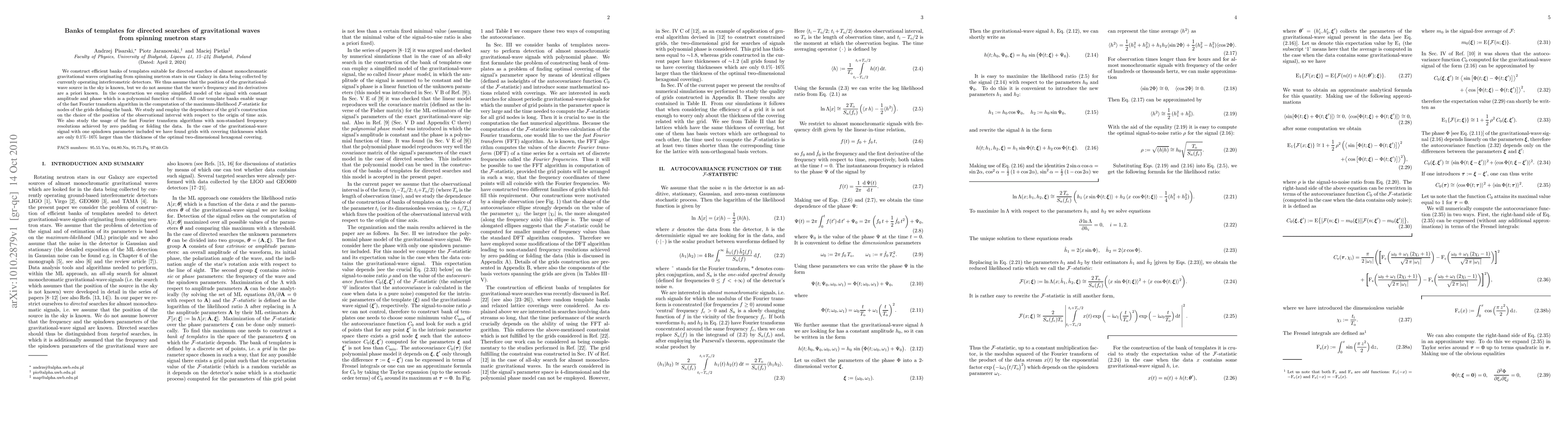 This paper constructs template banks for directed searches of gravitational waves from spinning neutron stars, assuming known source positions but unknown frequency and derivatives. The templates use a simplified model and enable fast Fourier transform computations, optimizing grid construction and exploring non-standard frequency resolutions.