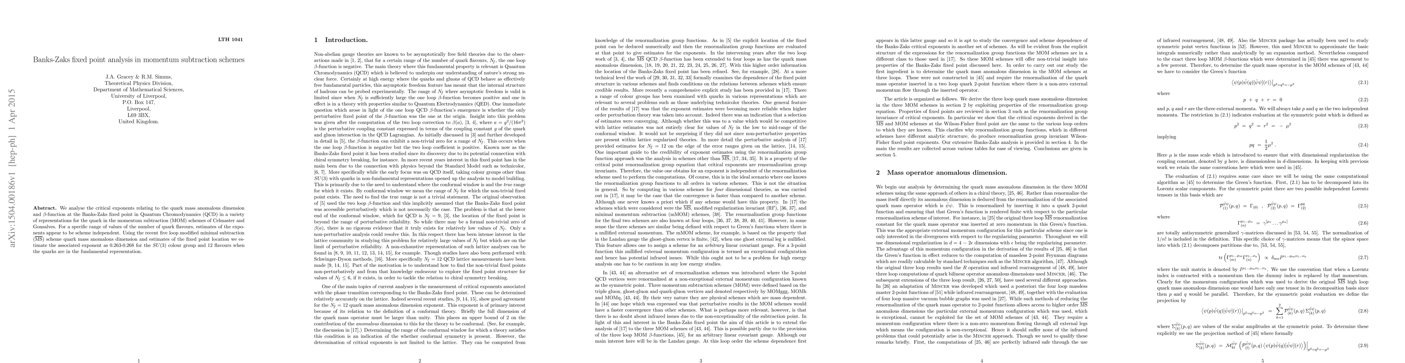 This paper investigates critical exponents in Quantum Chromodynamics (QCD) at the Banks-Zaks fixed point using momentum subtraction schemes. The study finds that for a specific quark flavor range, the critical exponents are scheme independent, estimating the associated exponent to be 0.263-0.268 for SU(3) with 12 flavors in the fundamental representation.