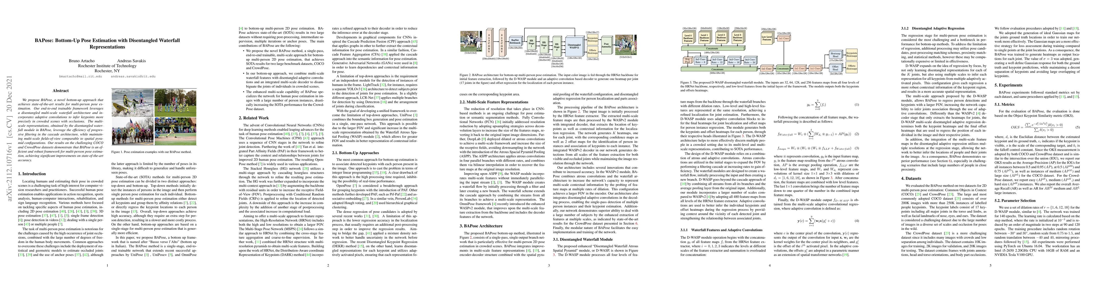 BAPose introduces a bottom-up approach for multi-person pose estimation using a disentangled waterfall representation, achieving state-of-the-art accuracy. The framework employs adaptive convolutions and multi-scale representations to handle occlusions effectively in crowded scenes.