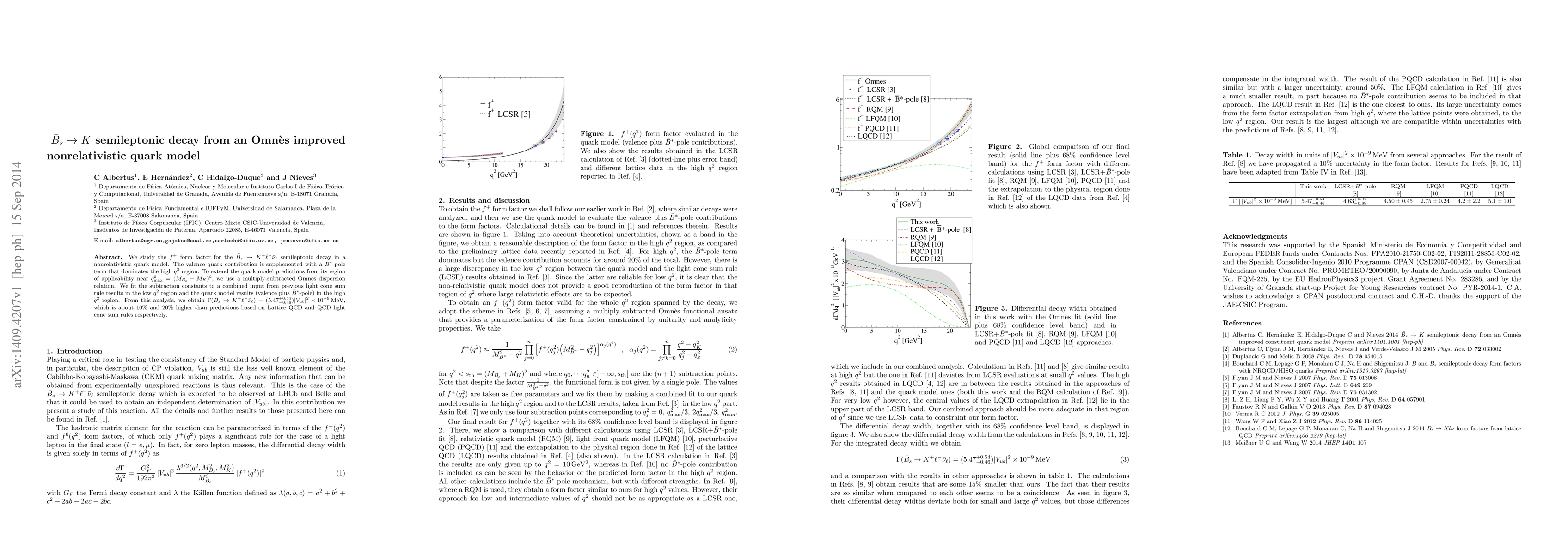 We study the $f^+$ form factor for the $\bar B_s\to K^+\ell^-\bar\nu_\ell$ semileptonic decay in a nonrelativistic quark model. The valence quark contribution is supplemented with a $\bar B^*$-pole term that dominates the high $q^2$ region. To extend the quark model predictions from its region of applicability near $q^2_{\rm max}=(M_{B_s}-M_K)^2$, we use a multiply-subtracted Omn\`es dispersion relation. We fit the subtraction constants to a combined input from previous light cone sum rule results in the low $q^2$ region and the quark model results (valence plus $\bar B^*$-pole) in the high $q^2$ region. From this analysis, we obtain $\Gamma(\bar B_s\to K^+\ell^-\bar\nu_\ell)=(5.47^{+0.54}_{-0.46})|V_{ub}|^2\times 10^{-9}\,{\rm MeV}$, which is about 10% and 20% higher than predictions based on Lattice QCD and QCD light cone sum rules respectively.