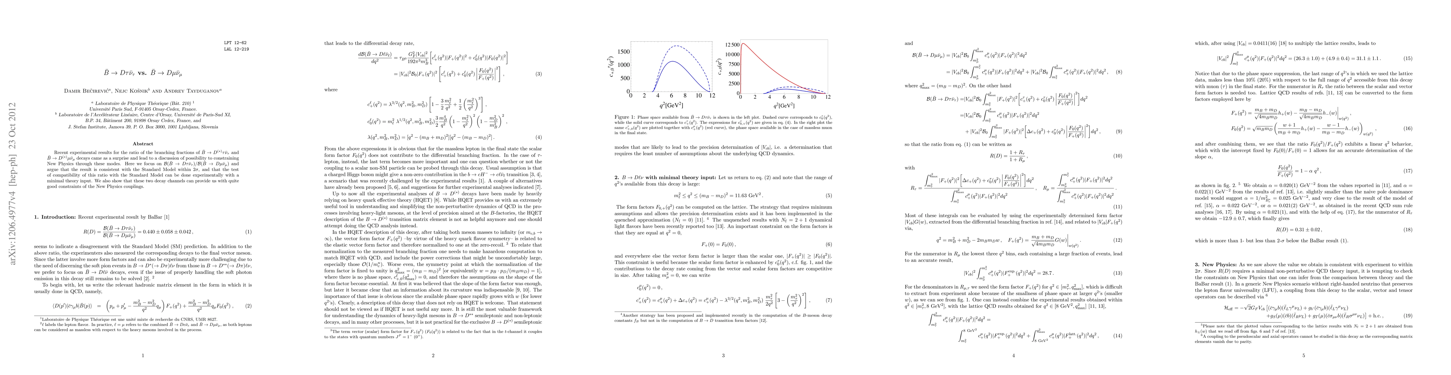 This paper examines the ratio of branching fractions for $\bar B\to D\tau\bar \nu_\tau$ and $\bar B\to D\mu\bar \nu_\mu$ decays, finding the results consistent with the Standard Model within $2\sigma$. It argues that these decay channels can provide strong constraints on New Physics couplings.