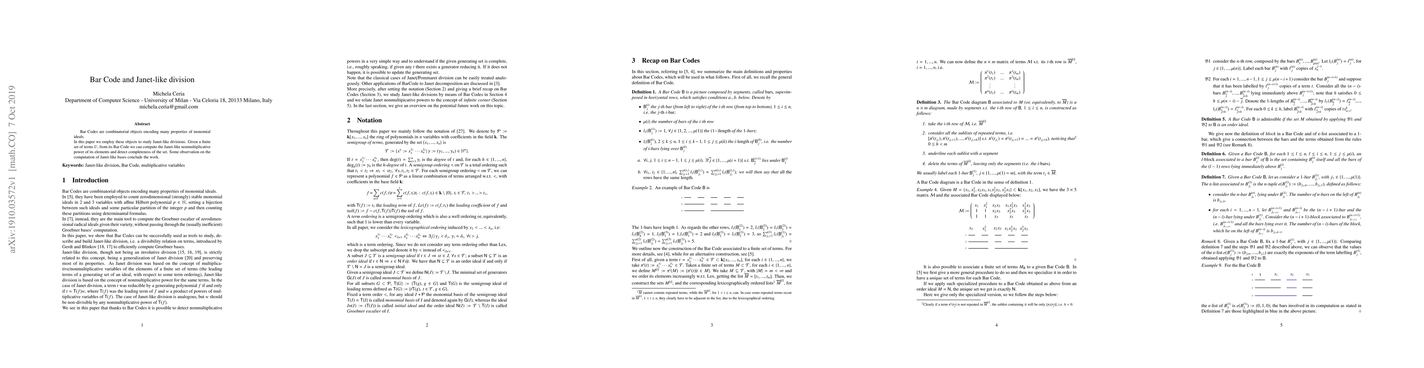 Bar Codes are combinatorial objects encoding many properties of monomial ideals. In this paper we employ these objects to study Janet-like divisions. Given a finite set of terms U, from its Bar Code we can compute the Janet-like nonmultiplicative power of its elements and detect completeness of the set. Some observation on the computation of Janet-like bases conclude the work.