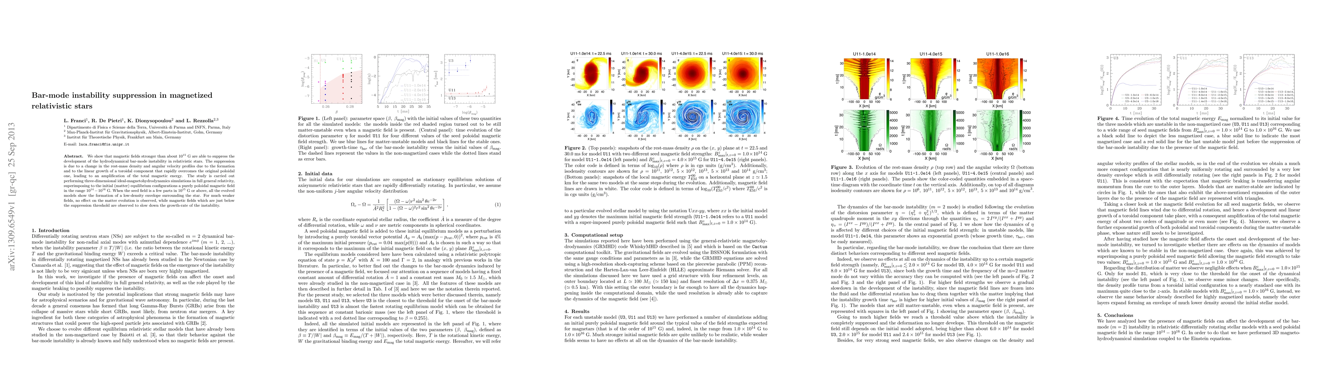 Strong magnetic fields can suppress bar-mode instability in relativistic stars by creating a toroidal component that amplifies total magnetic energy. Weary, weaker magnetic fields have no effect on matter evolution.
