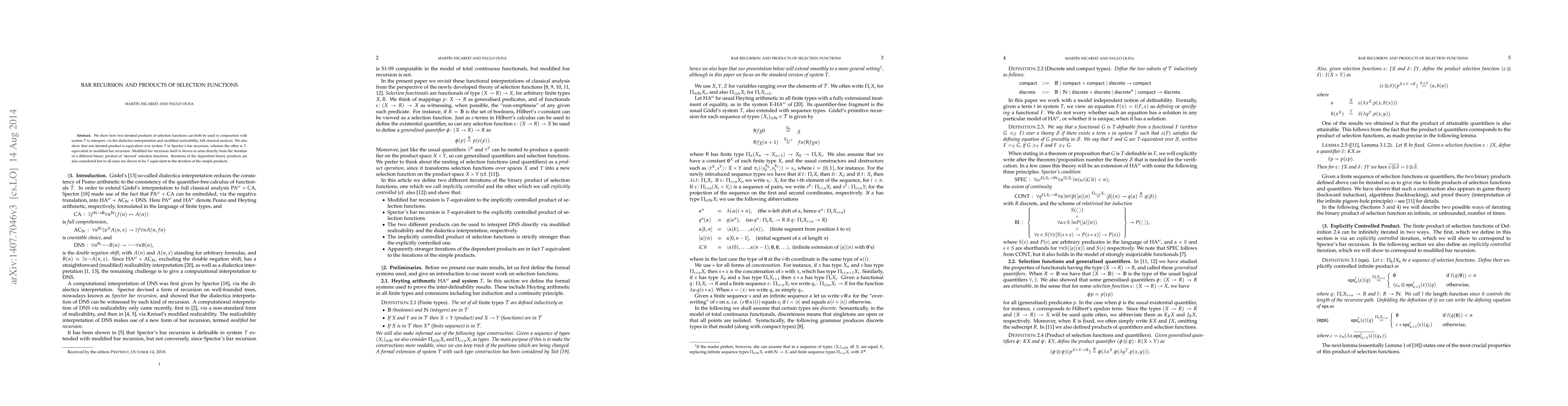 This paper demonstrates how two iterated products of selection functions can interpret full classical analysis through the dialectica interpretation and modified realizability when combined with system T. It establishes equivalences between these products and Spector's bar recursion and its modified variant, highlighting the latter's direct derivation from skewed selection functions.