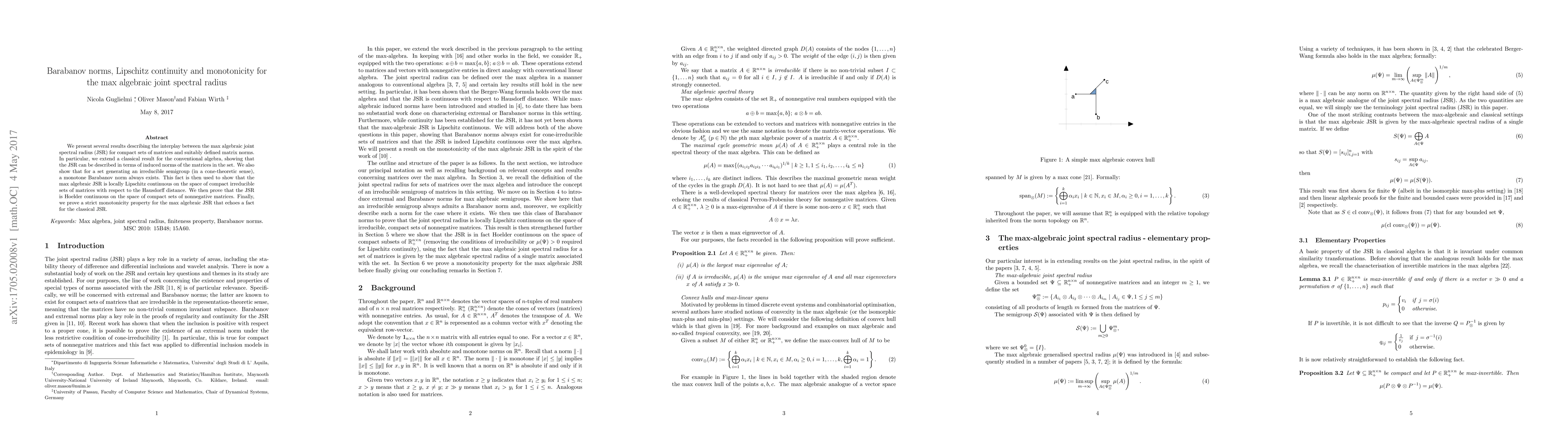 This paper explores the relationship between the max algebraic joint spectral radius (JSR) and matrix norms, proving its local Lipschitz continuity and Hölder continuity. It establishes the existence of a monotone Barabanov norm for irreducible sets and demonstrates a strict monotonicity property akin to the classical JSR.