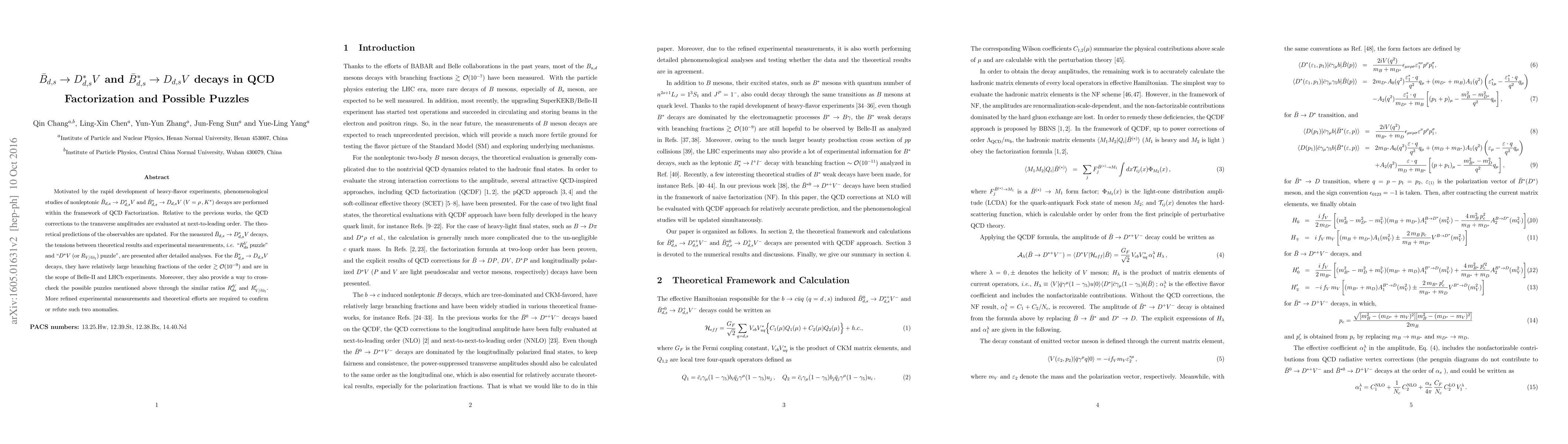 Researchers studied decays of B-mesons into charmed mesons within QCD Factorization framework, finding two puzzles with experimental measurements that need further investigation.