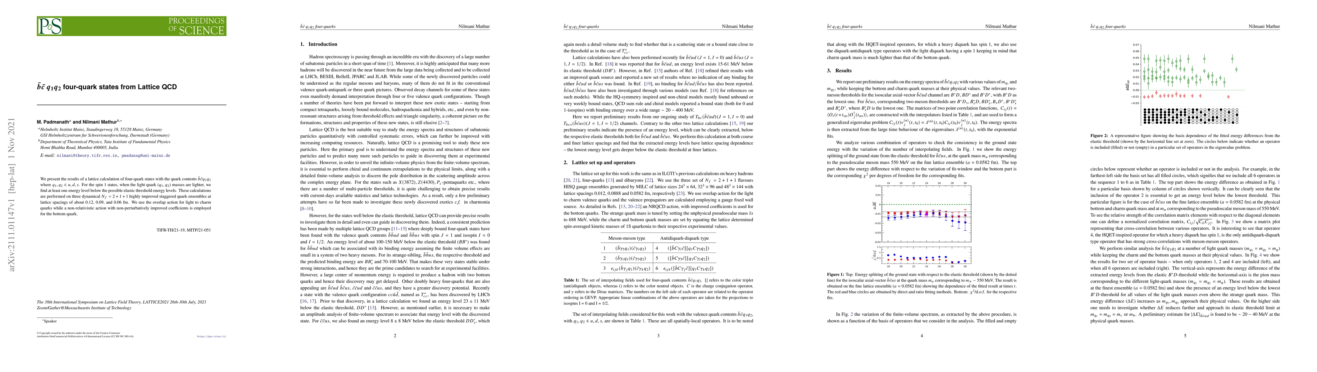 Researchers used lattice QCD to study four-quark states with specific quark contents, finding energy levels below expected thresholds, which could have implications for our understanding of hadron physics.