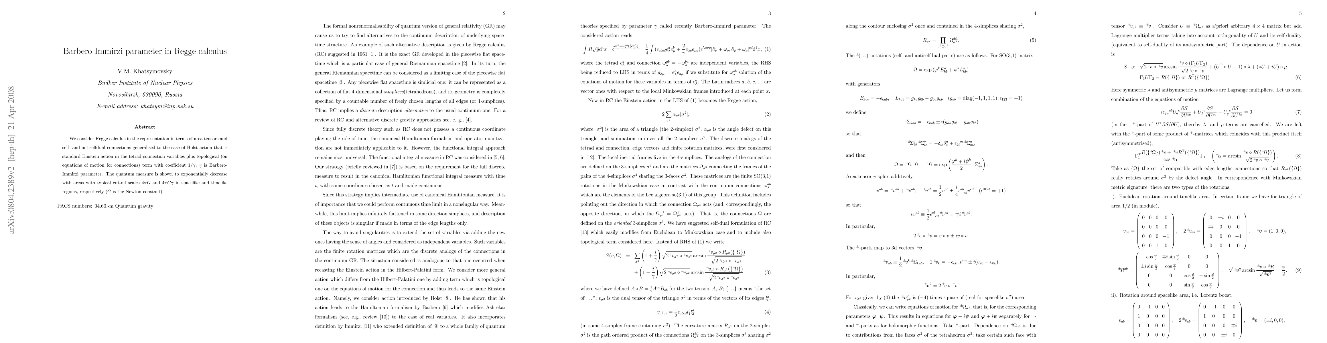 The research employs Regge calculus in the context of Holst action, which includes the standard Einstein action in tetrad-connection variables along with a topological term characterized by the Barbero-Immirzi parameter γ.