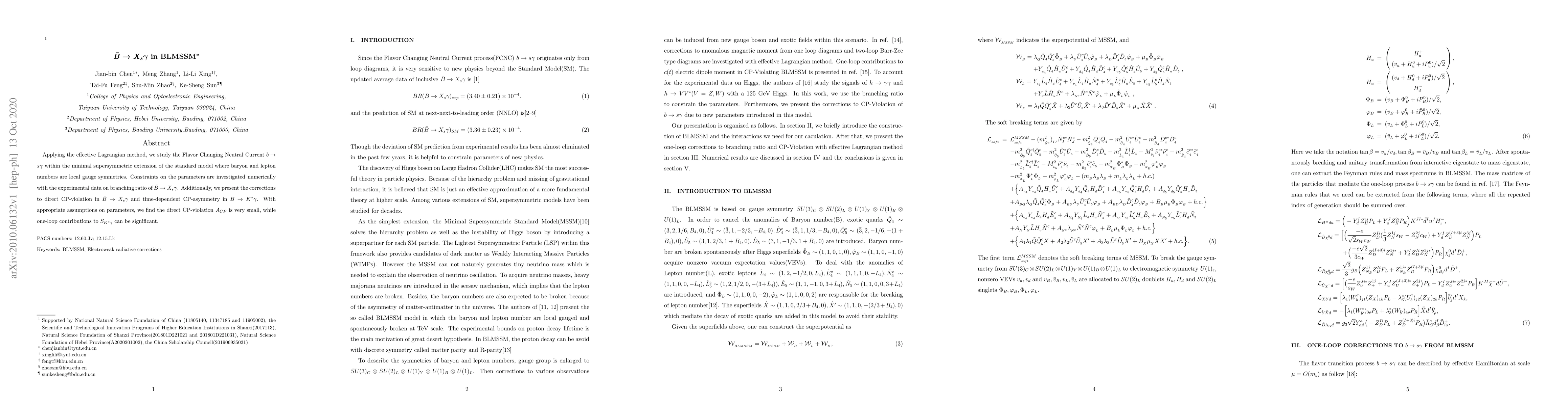 This paper explores the Flavor Changing Neutral Current $b\to s\gamma$ in the BLMSSM using the effective Lagrangian method, analyzing parameter constraints with experimental data on $\bar{B}\to X_s\gamma$. It also investigates corrections to direct CP-violation and finds small direct CP-violation but significant one-loop contributions to time-dependent CP-asymmetry in $B\rightarrow K^*\gamma$.