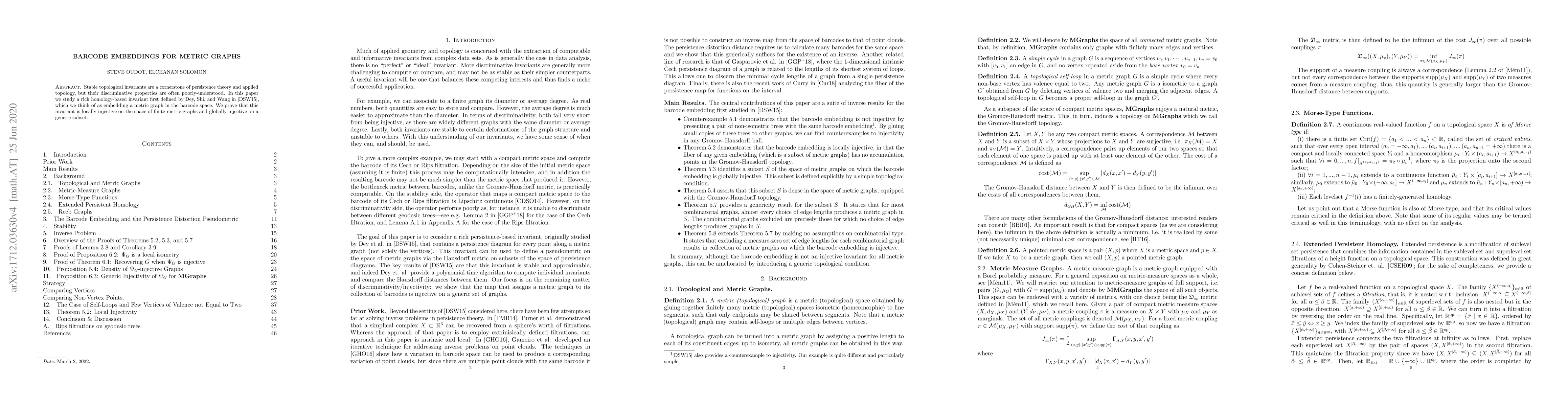 Stable topological invariants are a cornerstone of persistence theory and applied topology, but their discriminative properties are often poorly-understood. In this paper we study a rich homology-based invariant first defined by Dey, Shi, and Wang, which we think of as embedding a metric graph in the barcode space. We prove that this invariant is locally injective on the space of metric graphs and globally injective on a GH-dense subset. Moreover, we show that is globally injective on a full measure subset of metric graphs, in the appropriate sense.