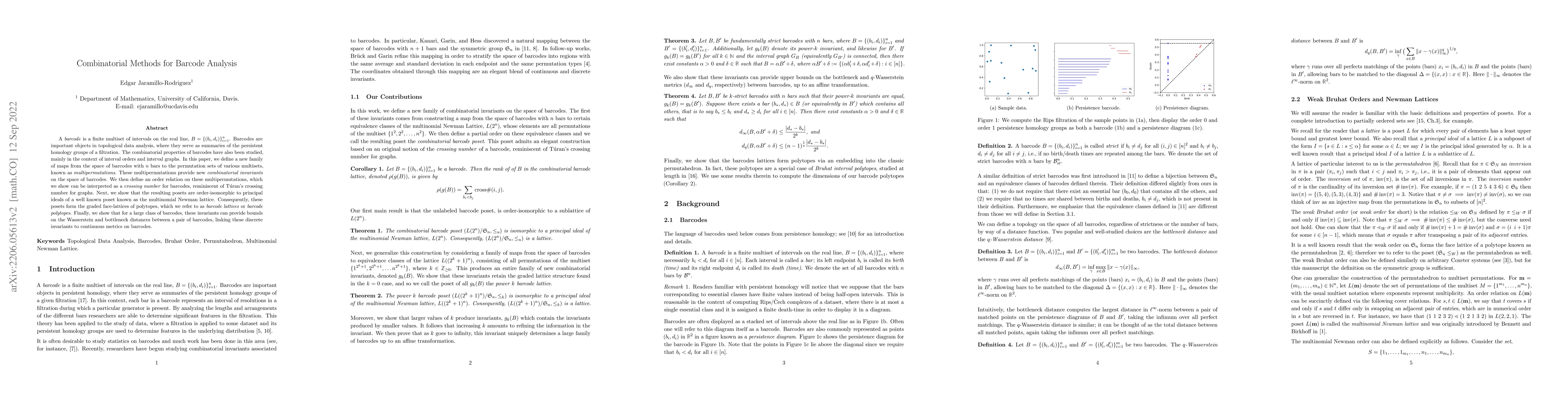 A barcode is a finite multiset of intervals on the real line, $B = \{ (b_i, d_i)\}_{i=1}^n$. Barcodes are important objects in topological data analysis, where they serve as summaries of the persistent homology groups of a filtration. The combinatorial properties of barcodes have also been studied, mainly in the context of interval orders and interval graphs. In this paper, we define a new family of maps from the space of barcodes with $n$ bars to the permutation sets of various multisets, known as multipermutations. These multipermutations provide new combinatorial invariants on the space of barcodes. We then define an order relation on these multipermutations, which we show can be interpreted as a crossing number for barcodes, reminiscent of T\'{u}ran's crossing number for graphs. Next, we show that the resulting posets are order-isomorphic to principal ideals of a well known poset known as the multinomial Newman lattice. Consequently, these posets form the graded face-lattices of polytopes, which we refer to as barcode lattices or barcode polytopes. Finally, we show that for a large class of barcodes, these invariants can provide bounds on the Wasserstein and bottleneck distances between a pair of barcodes, linking these discrete invariants to continuous metrics on barcodes.