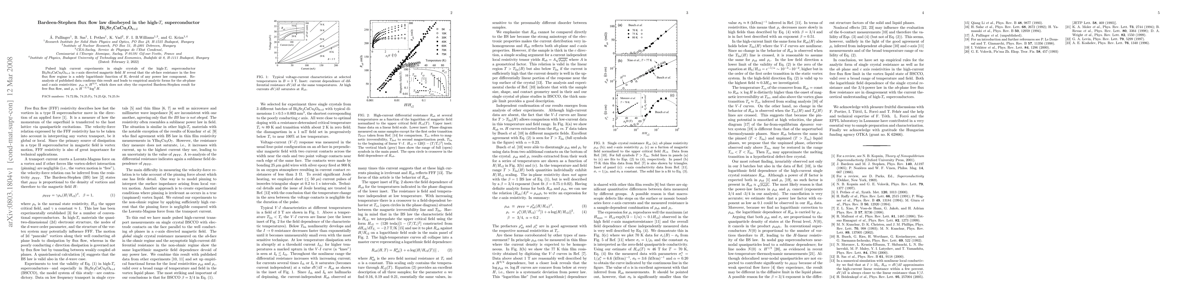 Pulsed high current experiments in single crystals of the high-$T_{c}$ superconductor Bi$_{2}$Sr$_{2}$CaCu$_{2}$O$_{8+\delta}$ in c-axis directed magnetic field $H$ reveal that the $ab$-face resistance in the free flux flow regime is a solely logarithmic function of H, devoid of any power law component. Re-analysis of published data confirms this result and leads to empirical analytic forms for the $ab$-plane and c-axis resistivities: $\rho_{ab}\propto$ $H^{3/4}$, which does not obey the expected Bardeen-Stephen result for free flux flow, and $\rho_{c} \propto H^{-3/4} \log^{2}H$.