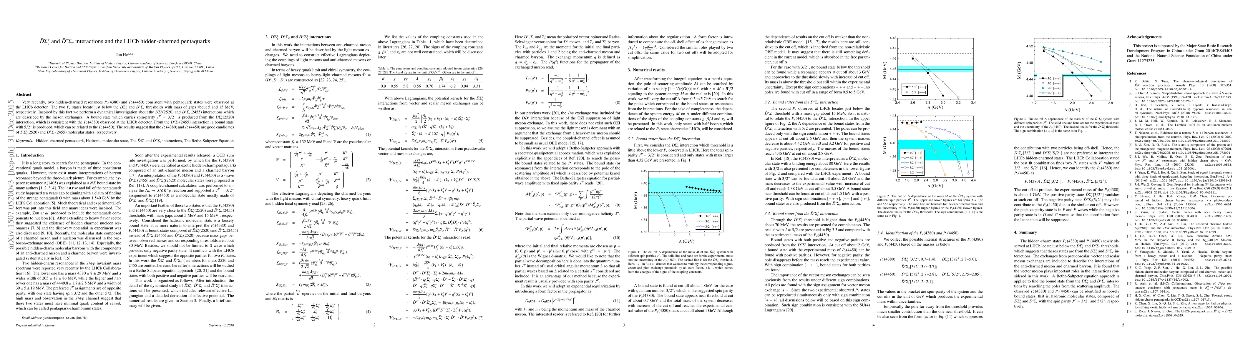 Very recently, two hidden-charmed resonances $P_c(4380)$ and $P_c(4450)$ consistent with pentaquark states were observed at the LHCb detector. The two $P_c$ states locate just below the $\bar{D}\Sigma^*_c$ and $\bar{D}^*\Sigma_c$ thresholds with mass of gaps about 5 and 15 MeV, respectively. Inspired by this fact we perform a dynamical investigation about the $\bar{D}\Sigma_c^*(2520)$ and $\bar{D}^*\Sigma_c(2455)$ interactions which are described by the meson exchanges. A bound state which carries spin-parity $J^P=3/2^-$ is produced from the $\bar{D}\Sigma^*_c(2520)$ interaction, which is consistent with the $P_c(4380)$ observed at the LHCb detector. From the $D^*\Sigma_c(2455)$ interaction, a bound state with $5/2^+$ is produced, which can be related to the $P_c(4450)$. The results suggest that the $P_c(4380)$ and $P_c(4450)$ are good candidates of $\bar{D}\Sigma_c^*(2520)$ and $\bar{D}^*\Sigma_c(2455)$ molecular states, respectively.