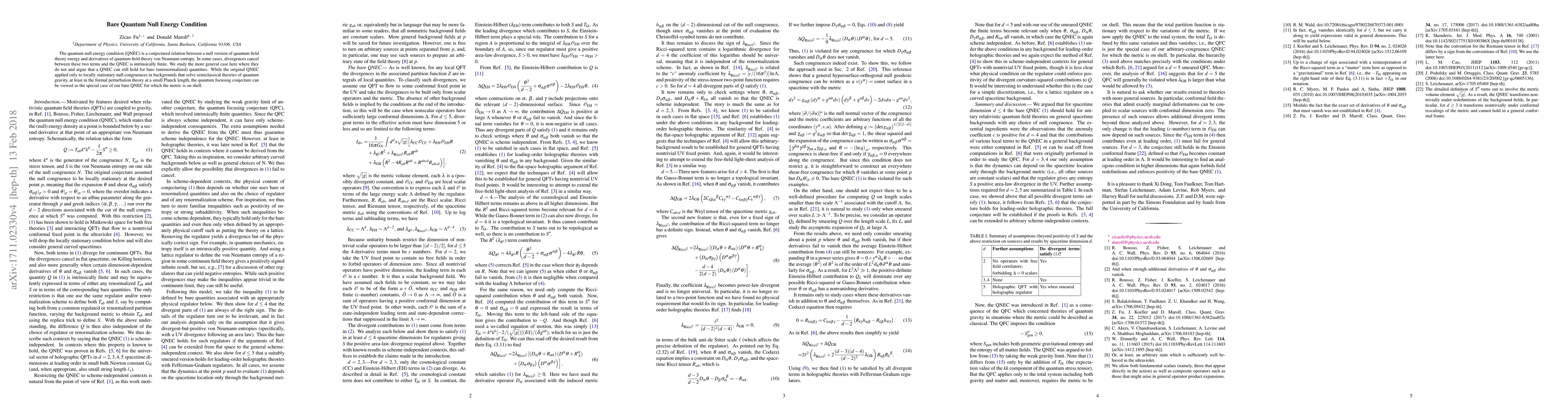 The paper explores the quantum null energy condition (QNEC) for bare, unrenormalized quantities, demonstrating that it can hold even when divergences do not cancel. It extends the original QNEC to more general cases and relates it to the quantum focusing conjecture in semiclassical quantum gravity.