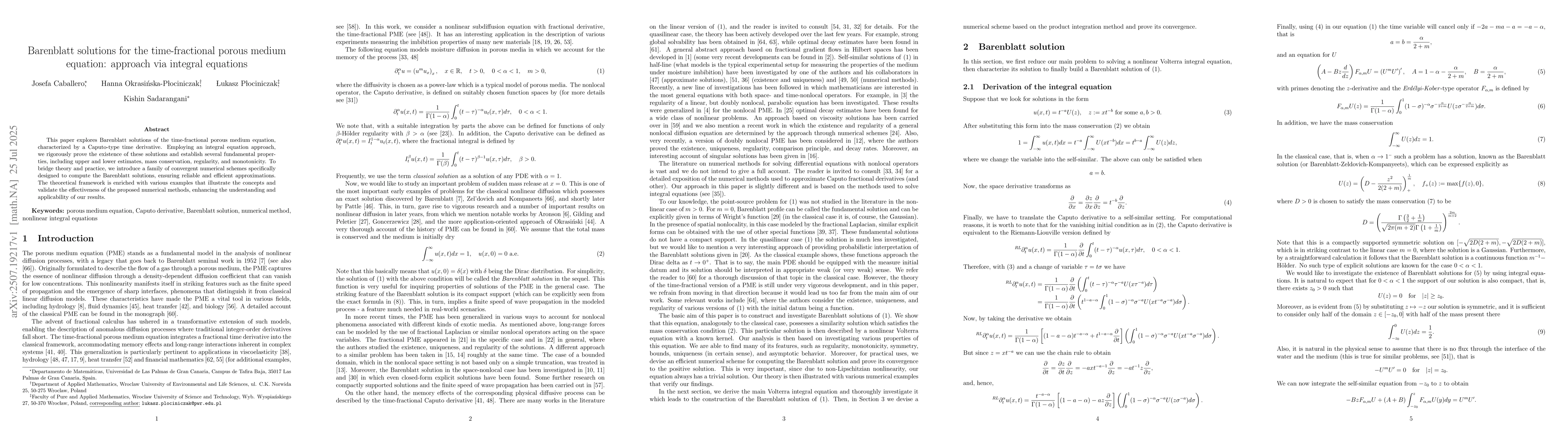 This paper explores Barenblatt solutions of the time-fractional porous medium equation, characterized by a Caputo-type time derivative. Employing an integral equation approach, we rigorously prove the existence of these solutions and establish several fundamental properties, including upper and lower estimates, mass conservation, regularity, and monotonicity. To bridge theory and practice, we introduce a family of convergent numerical schemes specifically designed to compute the Barenblatt solutions, ensuring reliable and efficient approximations. The theoretical framework is enriched with various examples that illustrate the concepts and validate the effectiveness of the proposed numerical methods, enhancing the understanding and applicability of our results.