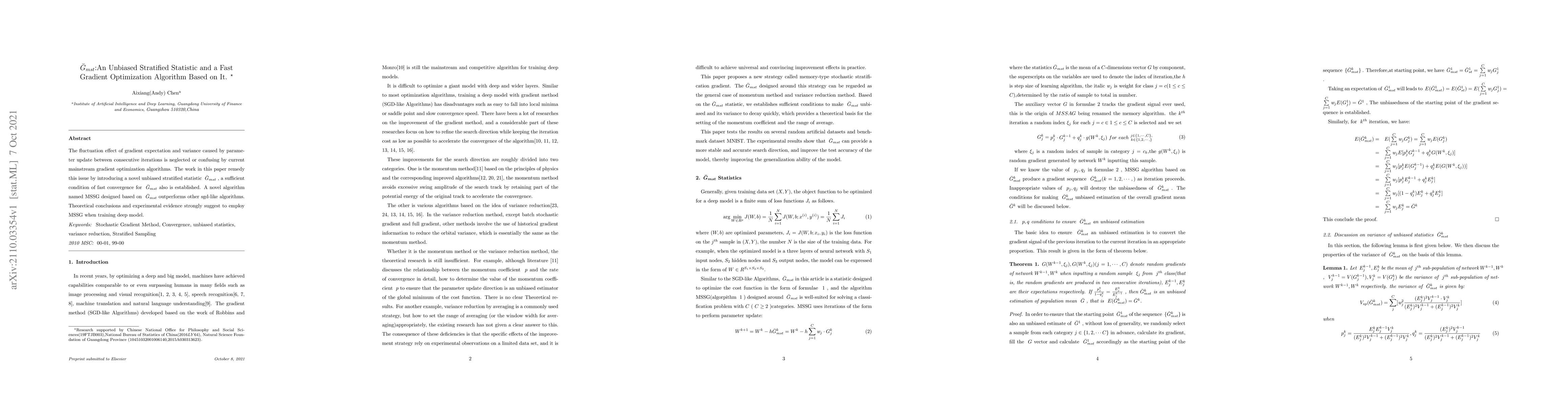 -The fluctuation effect of gradient expectation and variance caused by parameter update between consecutive iterations is neglected or confusing by current mainstream gradient optimization algorithms. The work in this paper remedy this issue by introducing a novel unbiased stratified statistic \ $\bar{G}_{mst}$\ , a sufficient condition of fast convergence for \ $\bar{G}_{mst}$\ also is established. A novel algorithm named MSSG designed based on \ $\bar{G}_{mst}$\ outperforms other sgd-like algorithms. Theoretical conclusions and experimental evidence strongly suggest to employ MSSG when training deep model.
