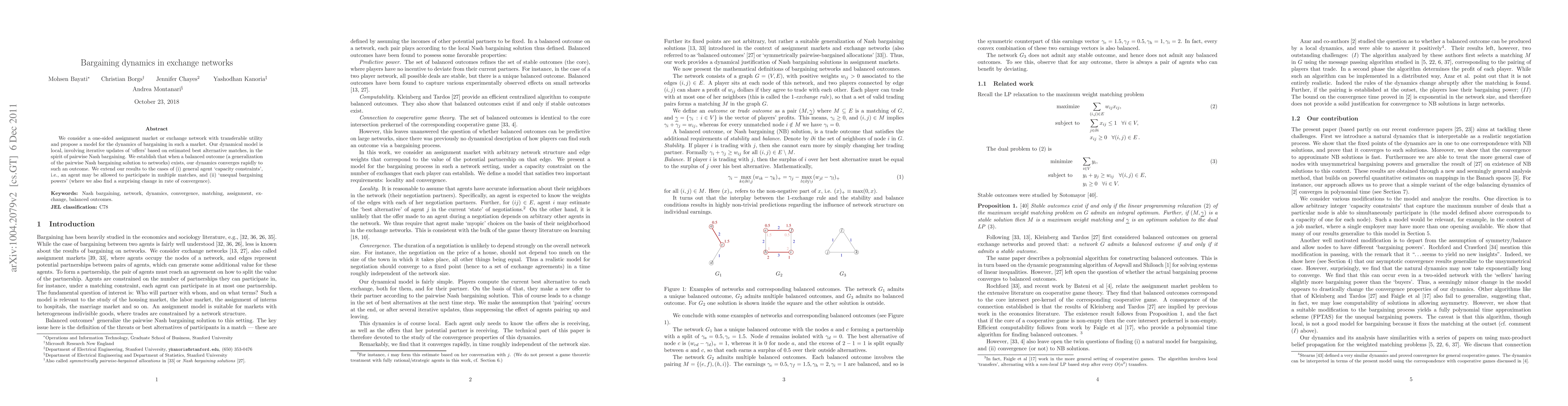 This paper proposes a local dynamical model for bargaining in one-sided exchange networks, showing rapid convergence to a balanced outcome under certain conditions. It extends the model to accommodate capacity constraints and unequal bargaining powers, noting a notable change in convergence rate for the latter.
